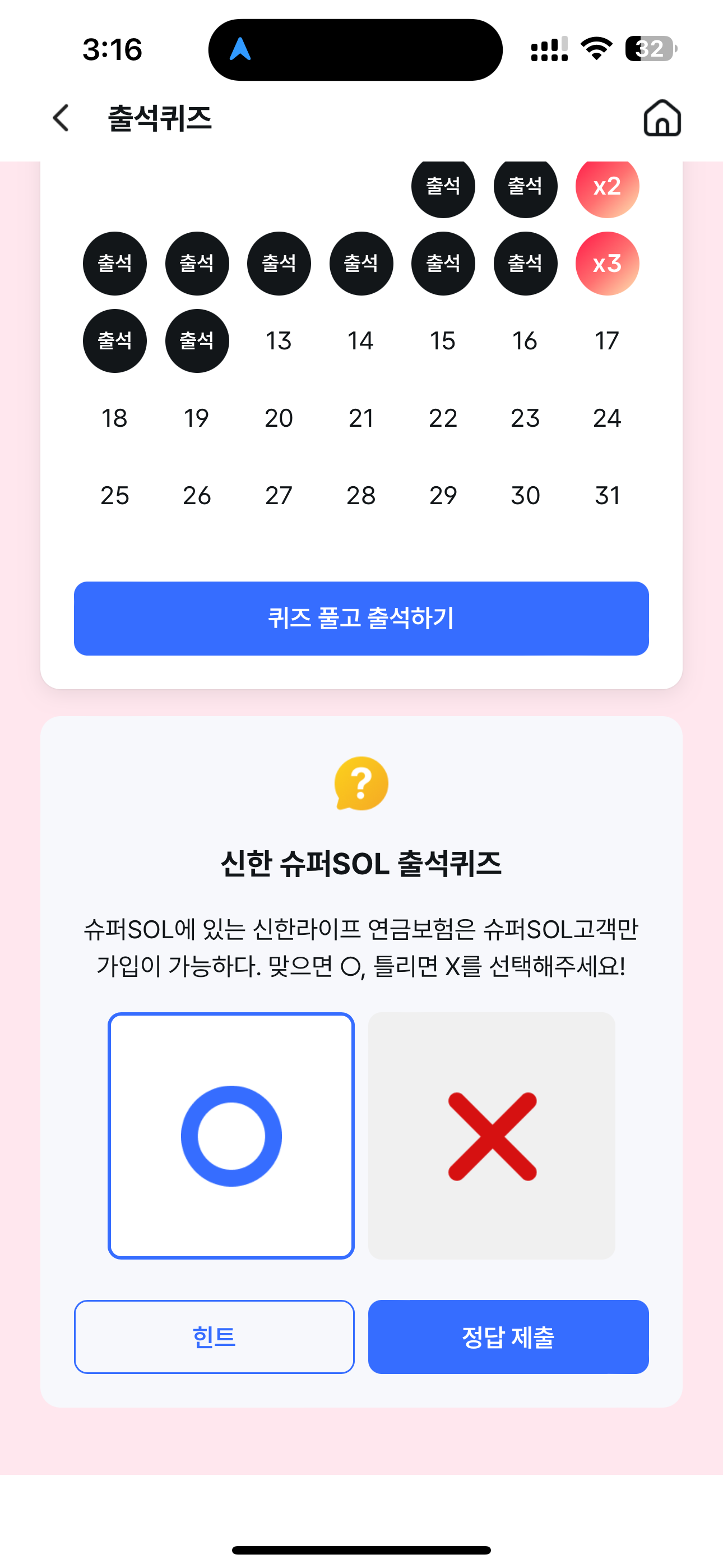 신한 슈퍼SOL 출석퀴즈 정답은 O 입니다
