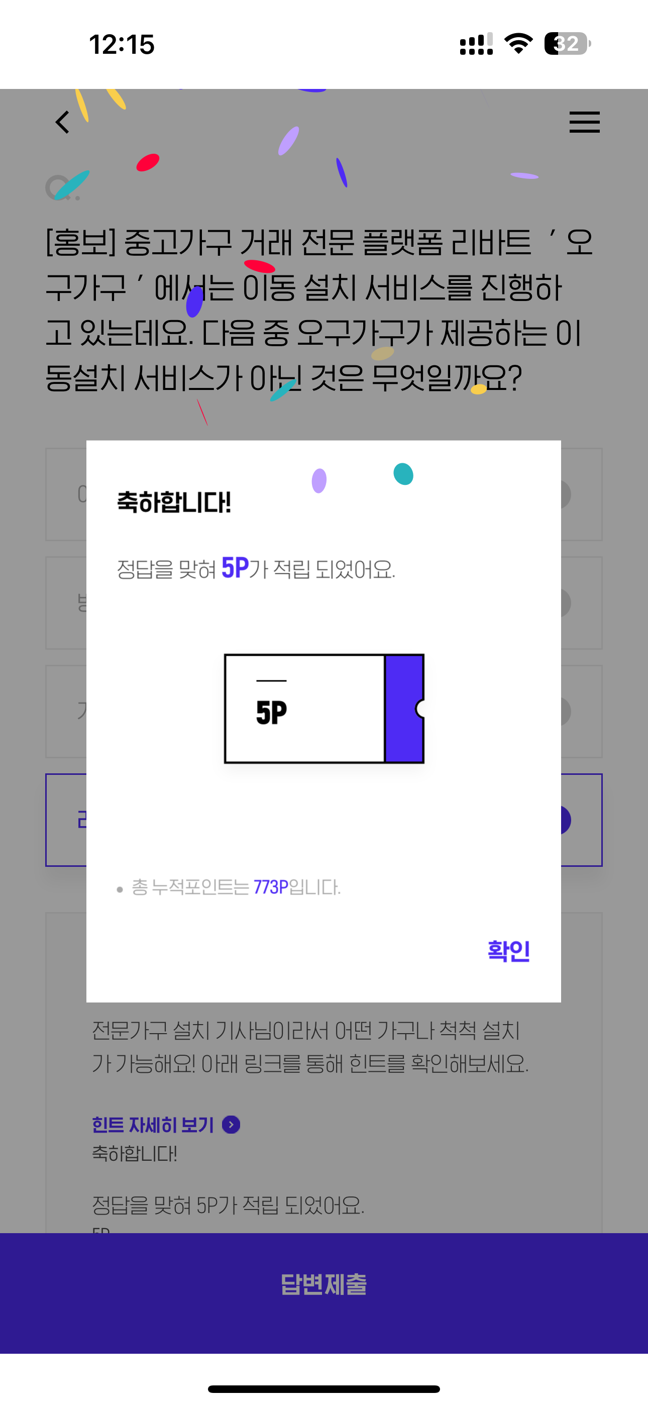 H포인트 퀴즈 3월 14일 정답(중고가구 거래 전문 플랫폼 리바트 오구가구 에서는 이동 설치 서비스를 진행하고 있는데요. 다음 중 오구가구가 제공하는 이동설치 서비스가 아닌 것은 무엇일까..