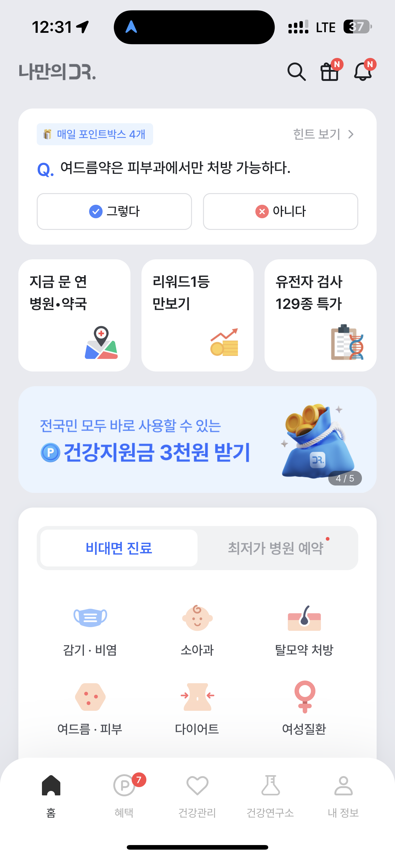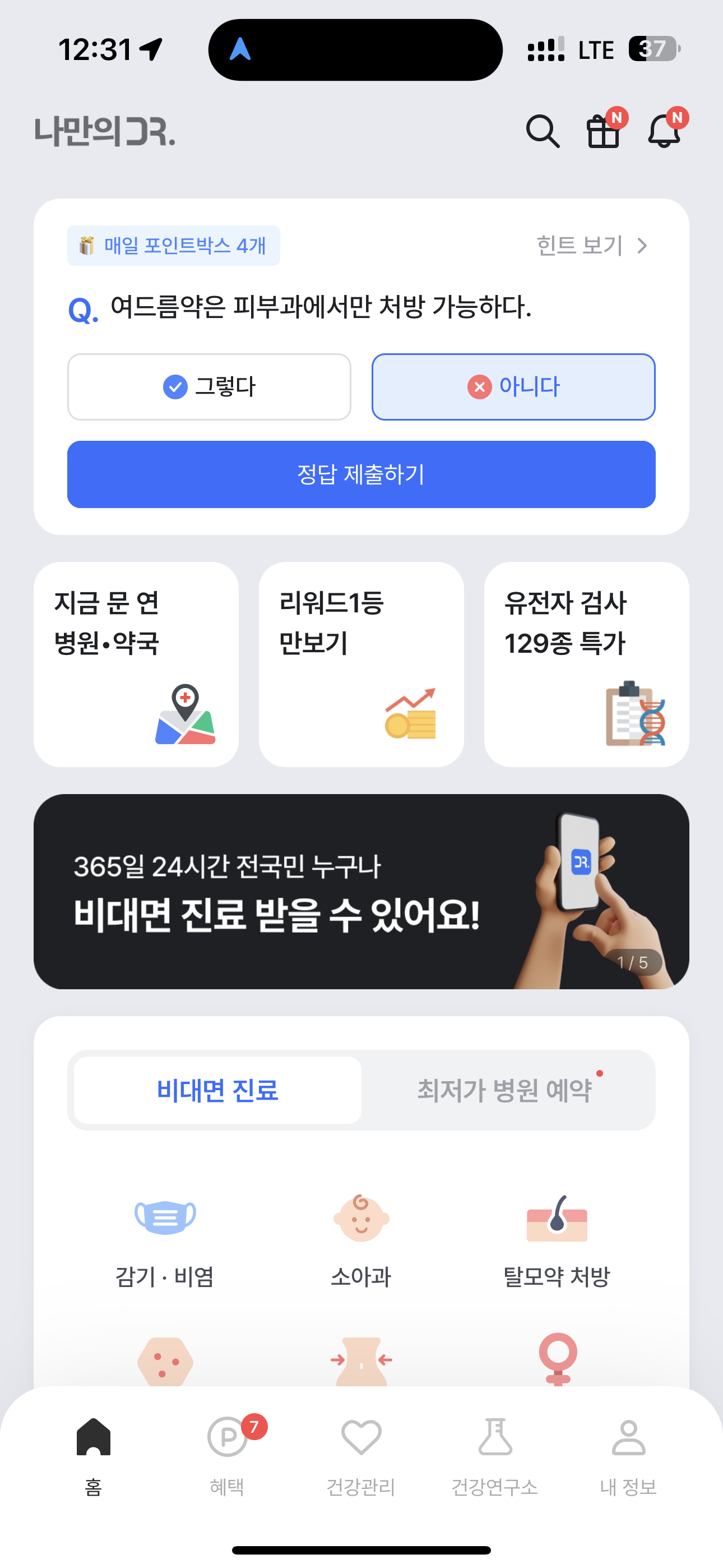 나만의닥터 퀴즈 3월 15일 정답(여드름약은 피부과에서만 처방 가능하다)