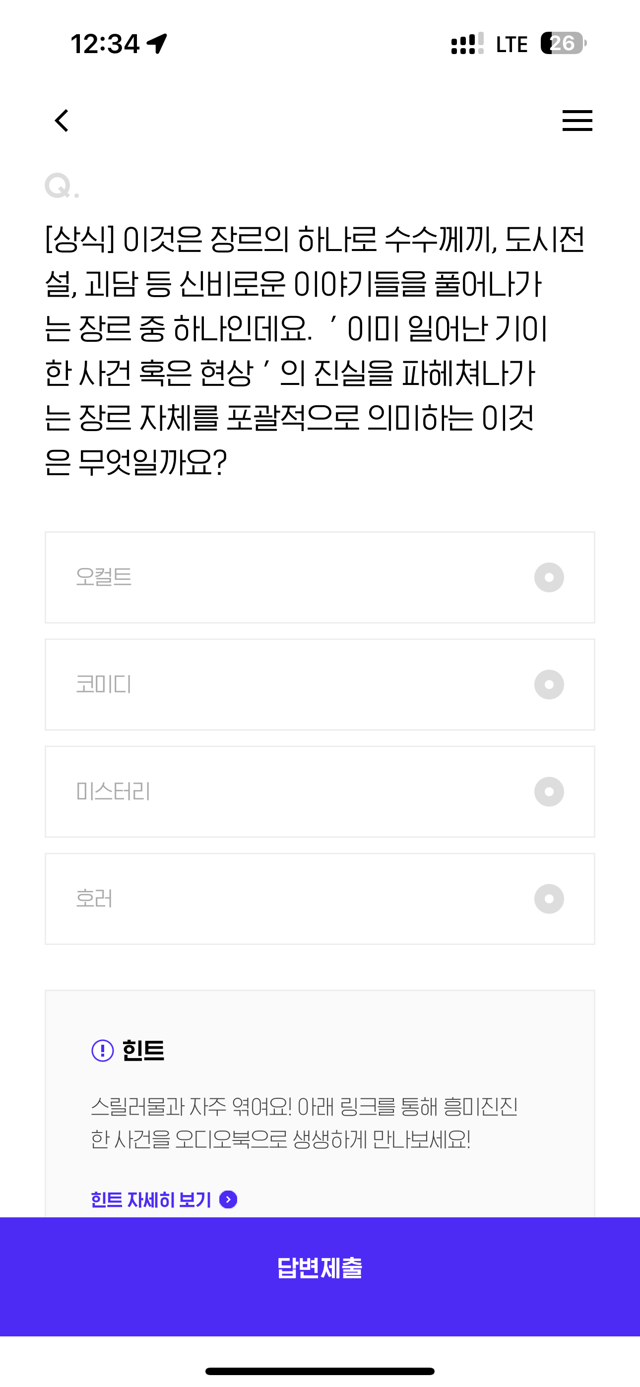 H포인트 퀴즈 정답은 미스터리 입니다.