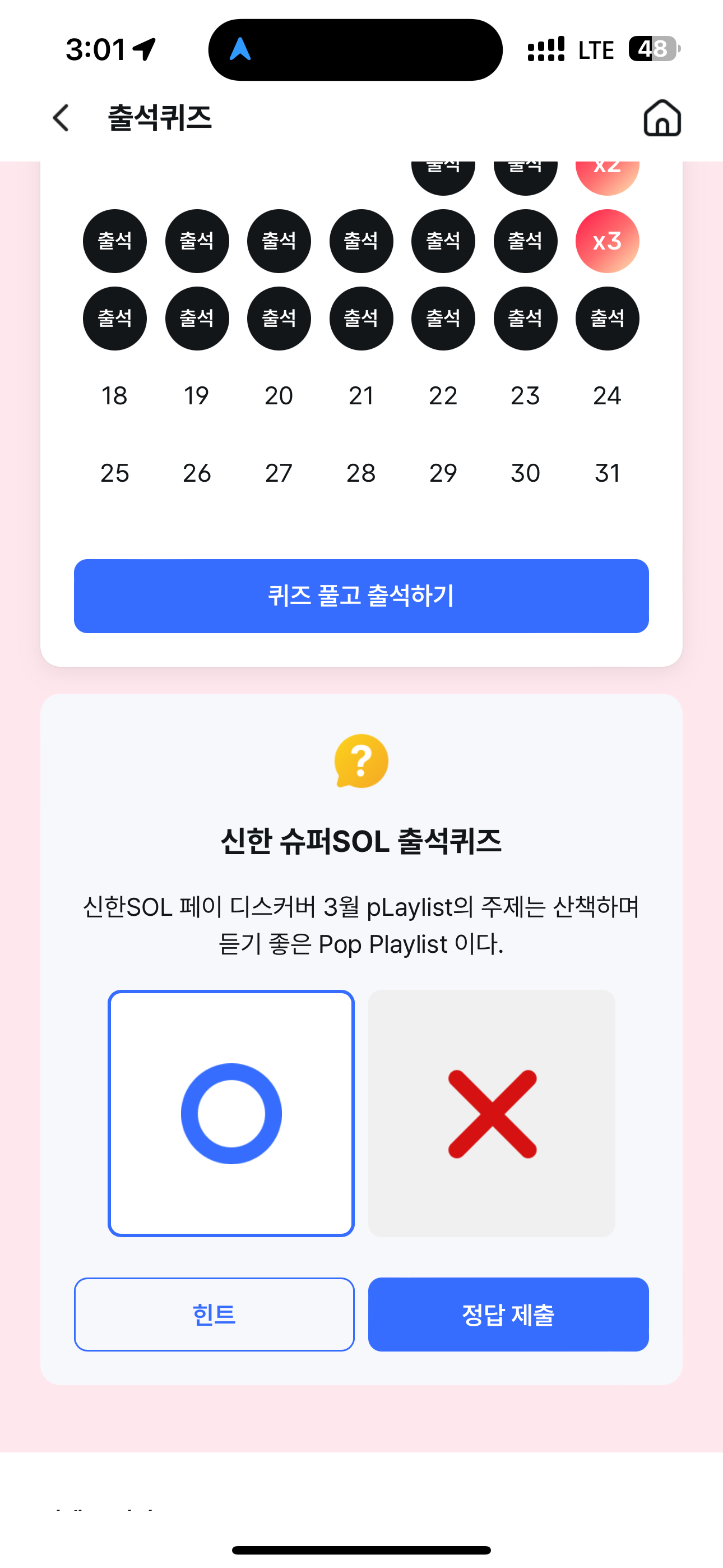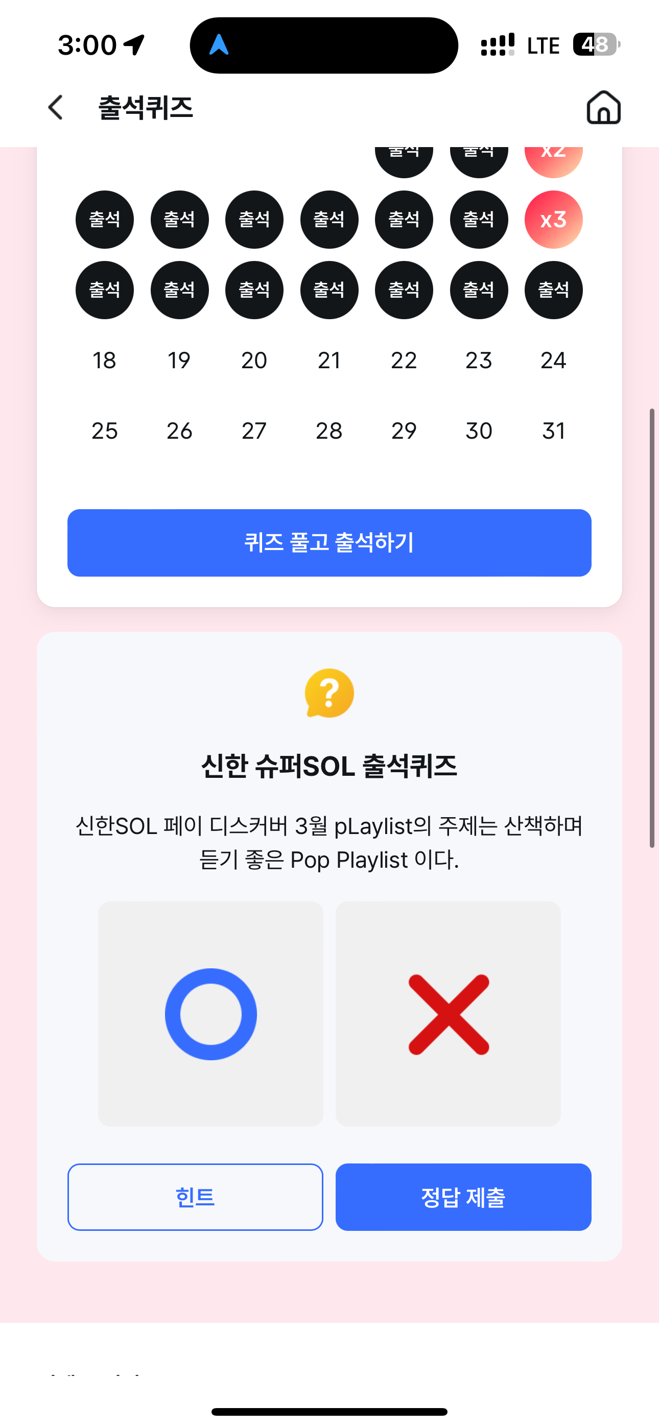 신한 슈퍼SOL 출석퀴즈 정답은 O 입니다