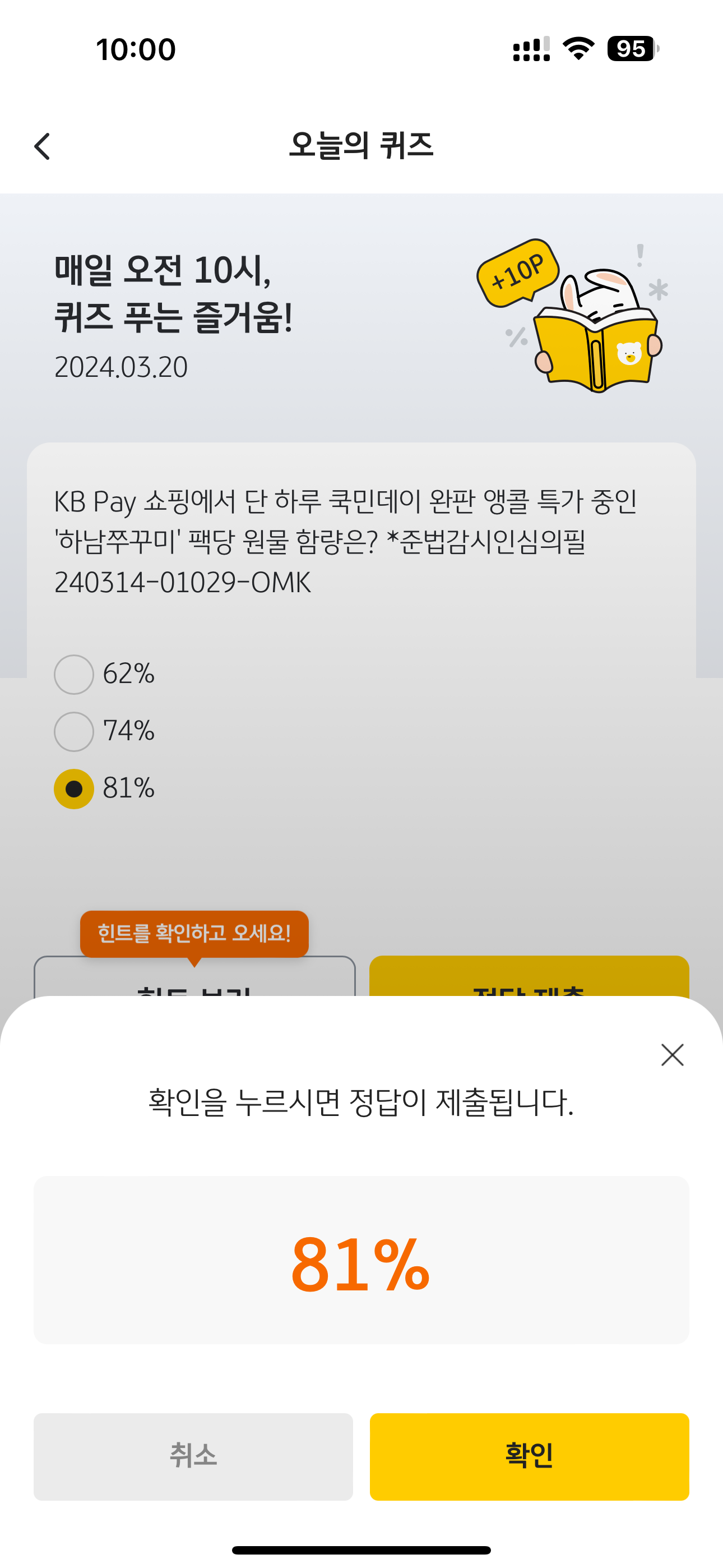 KB Pay 오늘의 퀴즈 정답은 81% 입니다