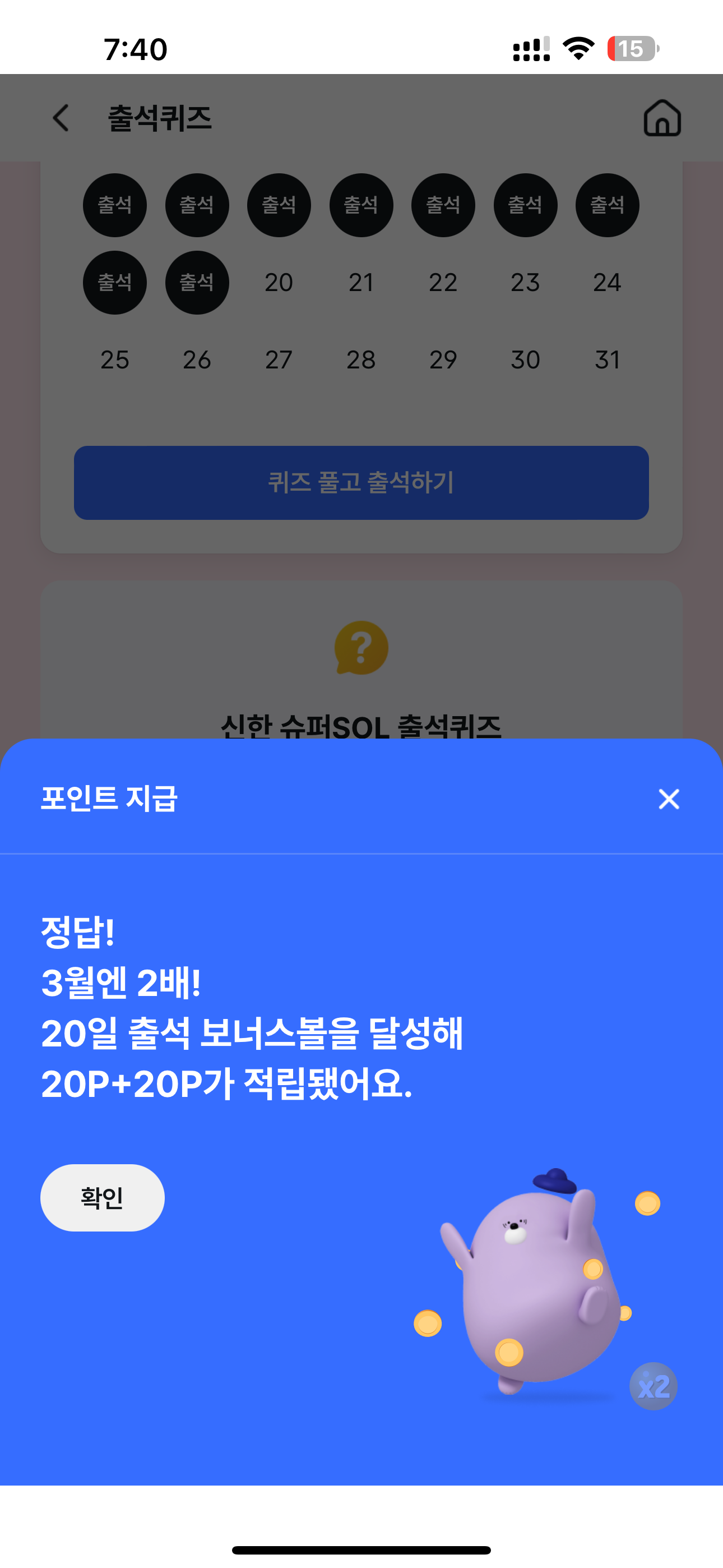 40포인트를 받았습니다. 포인트는 현금 전환 가능하니 꼭 받으시고요. 여러분의 재테크를 응원합니다