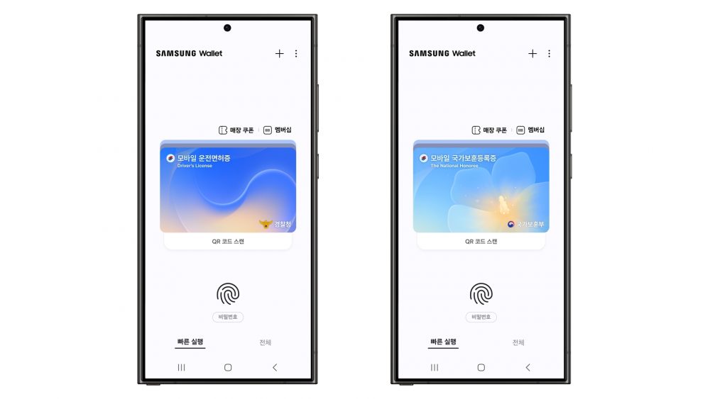 삼성월렛에는 다른 서비스에서는 만날 수 없는 정부가 인정한 법적 효력이 있는 모바일 운전면허증, 모바일 국가보훈등록증이 들어갑니다. 행정안전부와 대한민국 정부와 업무 협약을 맺은 삼성은 강력한 보안 서비스와 함께 모바일 신분증을 삼성월렛에서 발급 받고 활용할 수 있게 했습니다.