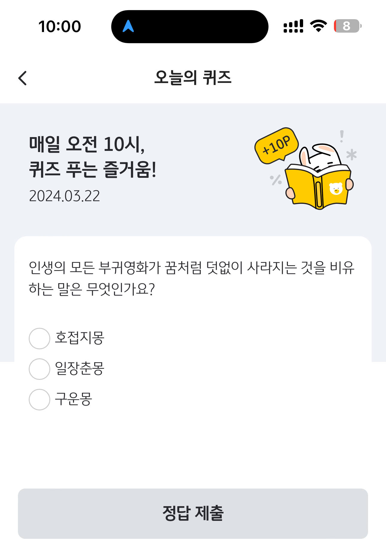 10포인트 받았습니다. 포인트는 현금 전환 가능하니 꼭 받으시고요. 여러분의 재테크를 응원합니다