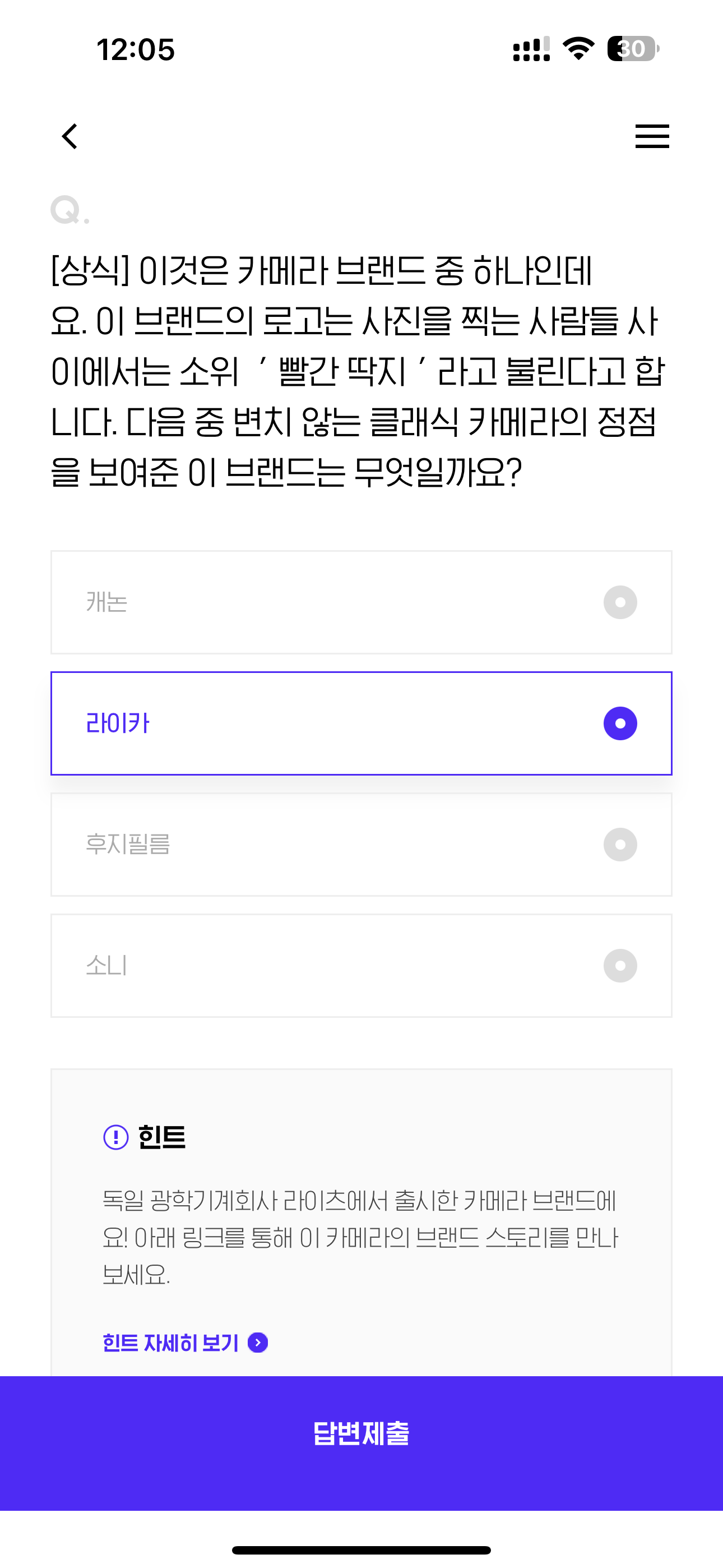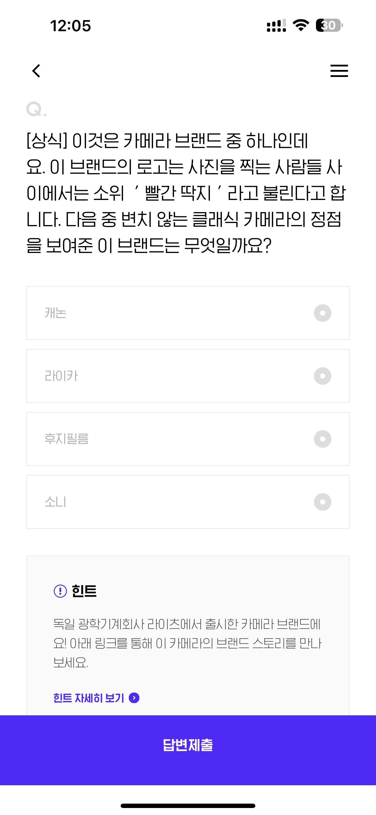 H포인트 퀴즈 3월 23일 정답(이것은 카메라 브랜드 중 하나인데요. 이 브랜드의 로고는 사진을 찍는 사람들 사이에서는 소위 빨간 딱지 라고 불린다고 합니다)