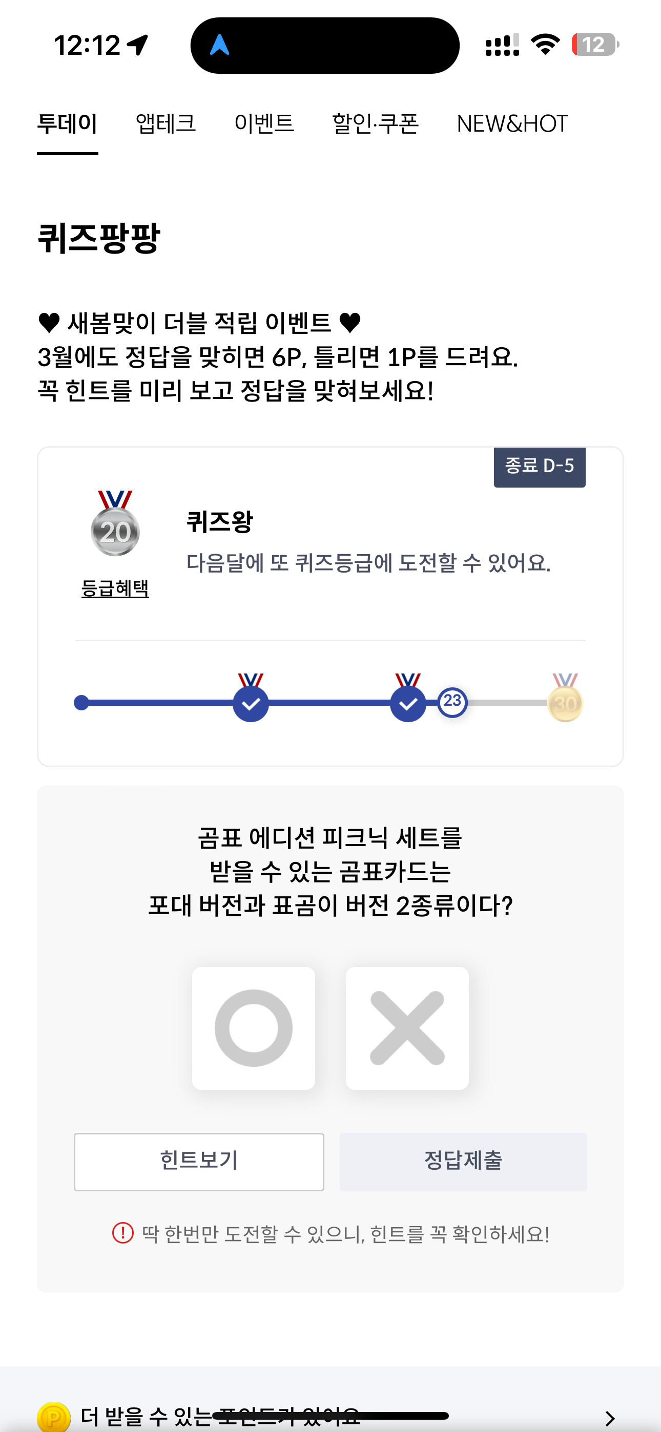 신한카드 퀴즈팡팡 정답은 O 입니다