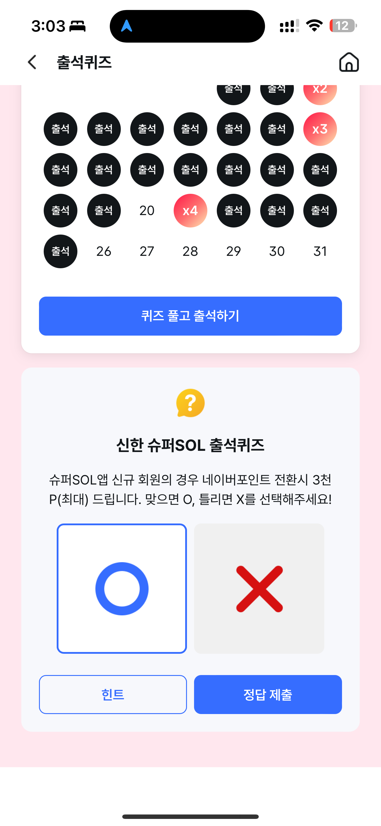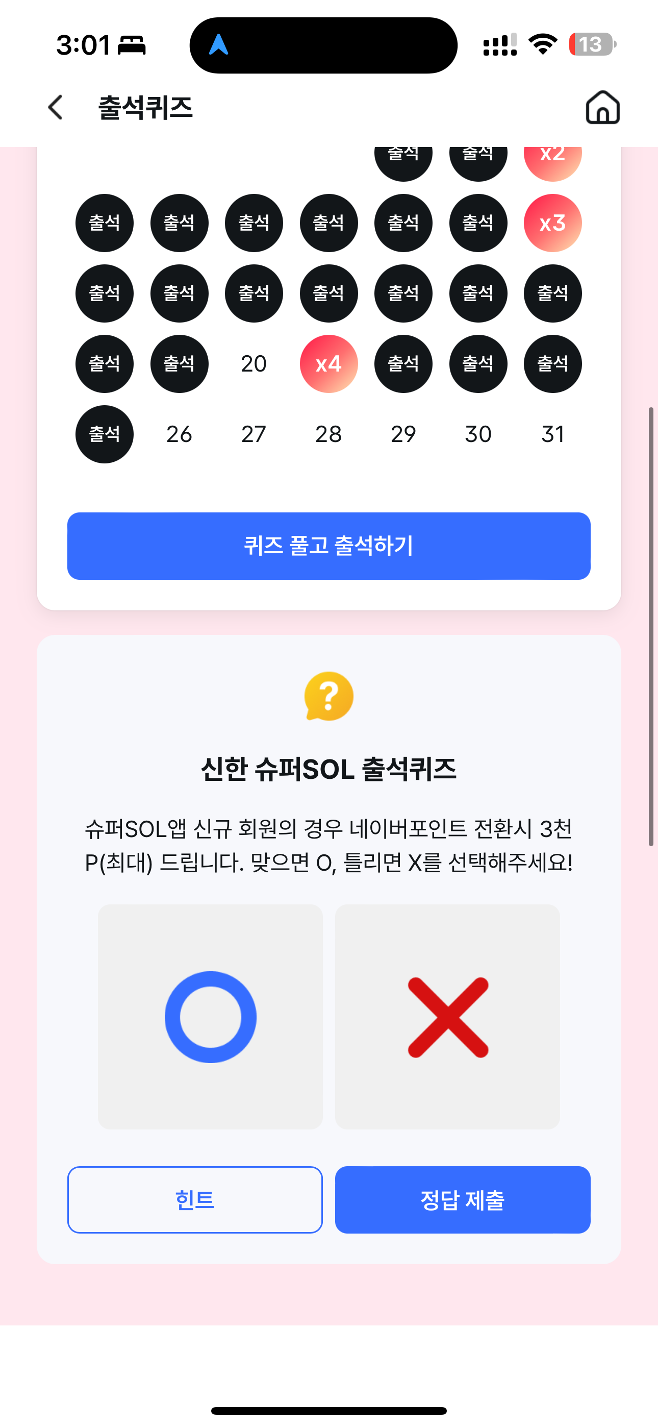 신한 슈퍼SOL 출석퀴즈 정답은 O 입니다