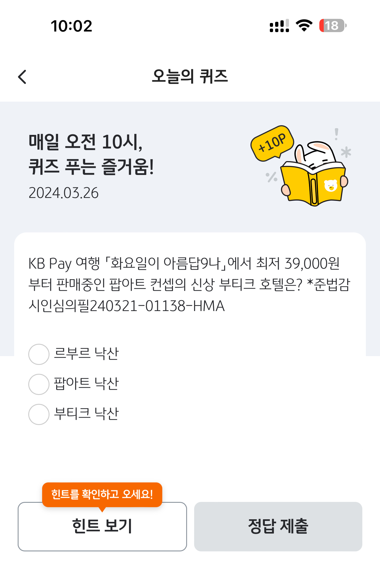 KB Pay 오늘의 퀴즈 3월 26일 문제입니다