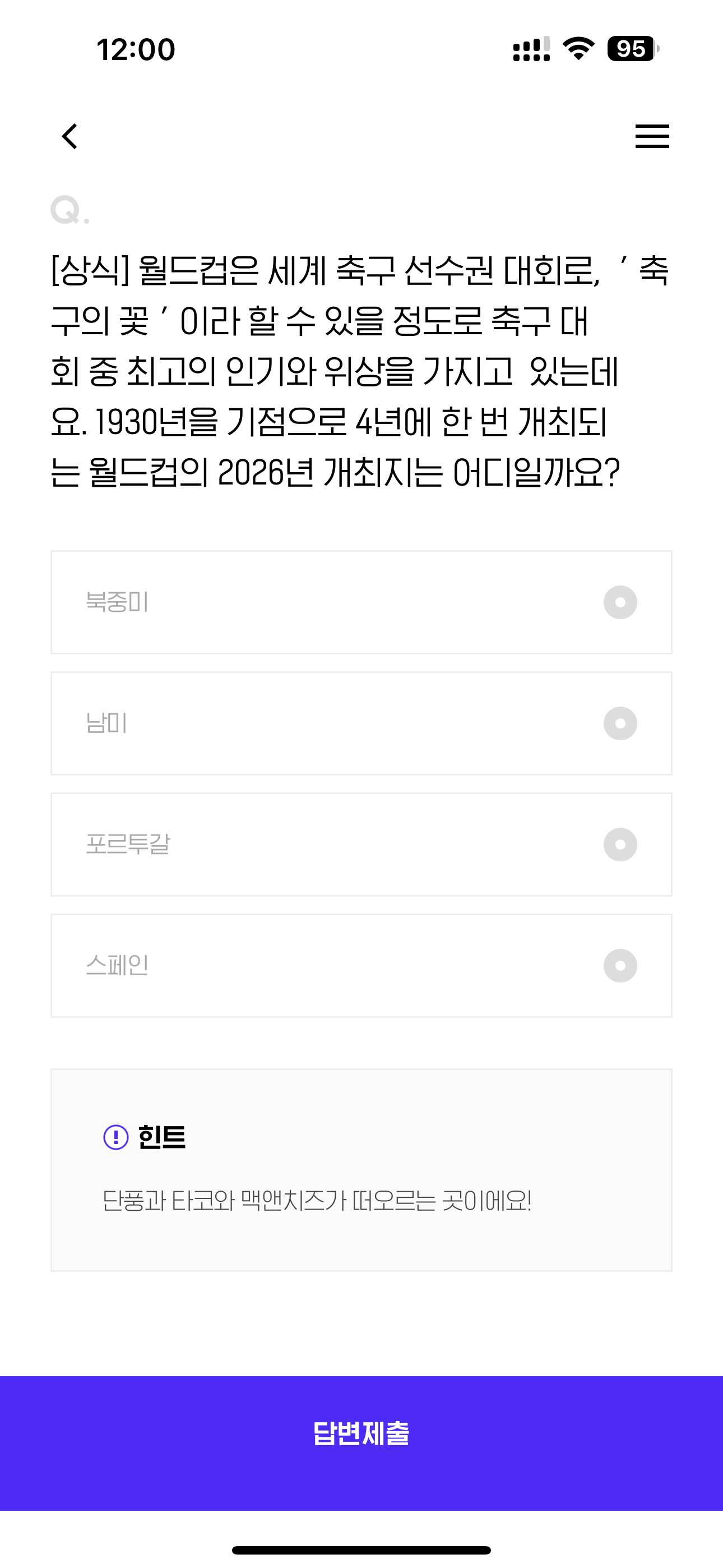 H포인트 퀴즈 정답은 북중미 입니다