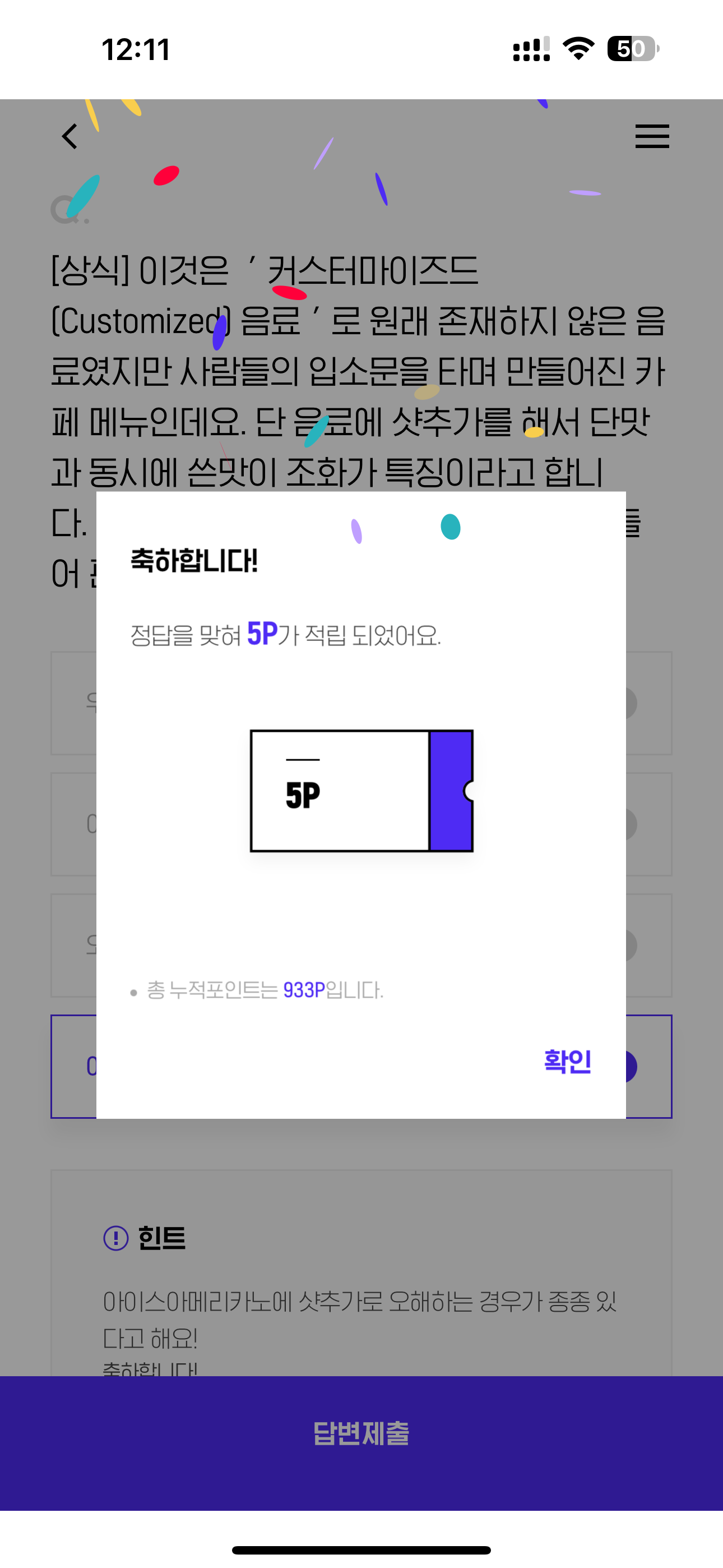 H포인트 퀴즈 3월 29일 정답(이것은 커스터마이즈드(Customized) 음료로 원래 존재하지 않은 음료였지만 사람들의 입소문을 타며 만들어진 카페 메뉴인데요)