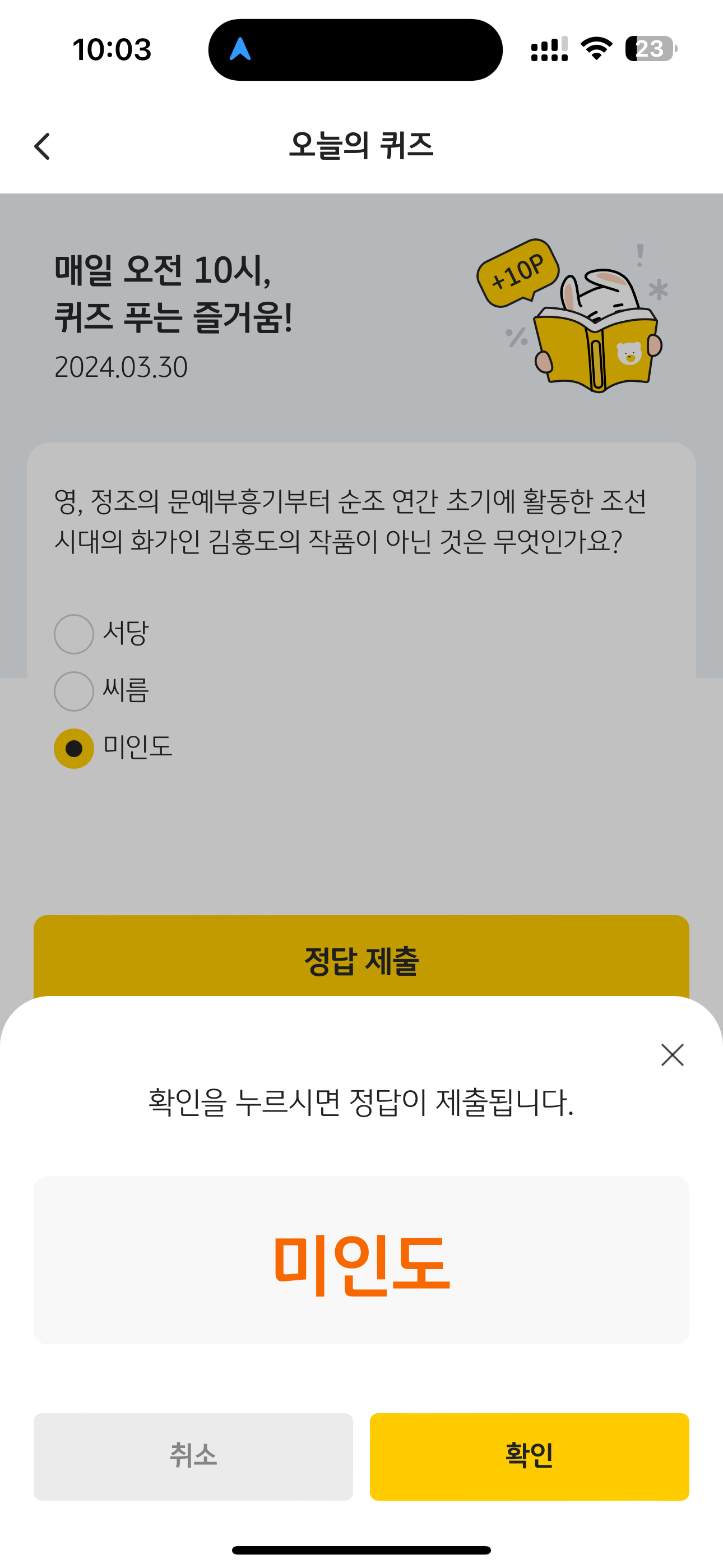 KB Pay 오늘의 퀴즈 정답은 미인도 입니다