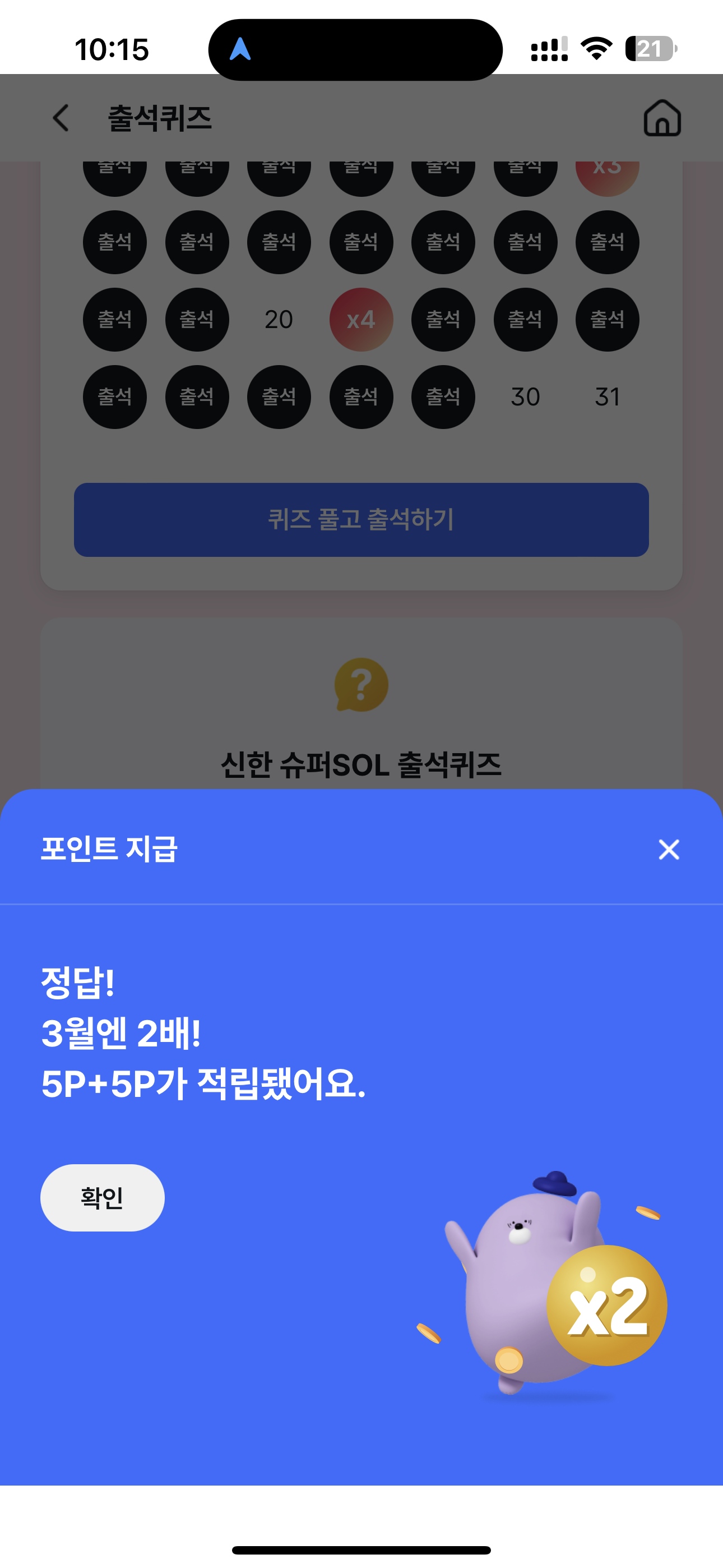 신한 슈퍼SOL 출석퀴즈 정답은 10 입니다