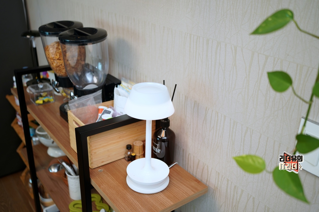 기본 구성품으로 위에 갓처럼 씌울 수 있는 쉐이드가 제공됩니다. 쉐이드를 씌우면 한층 더 부드러운 빛을 내게 되는데요. 디자인적인 변신도 가능해 다양한 느낌으로 사용이 가능합니다.
