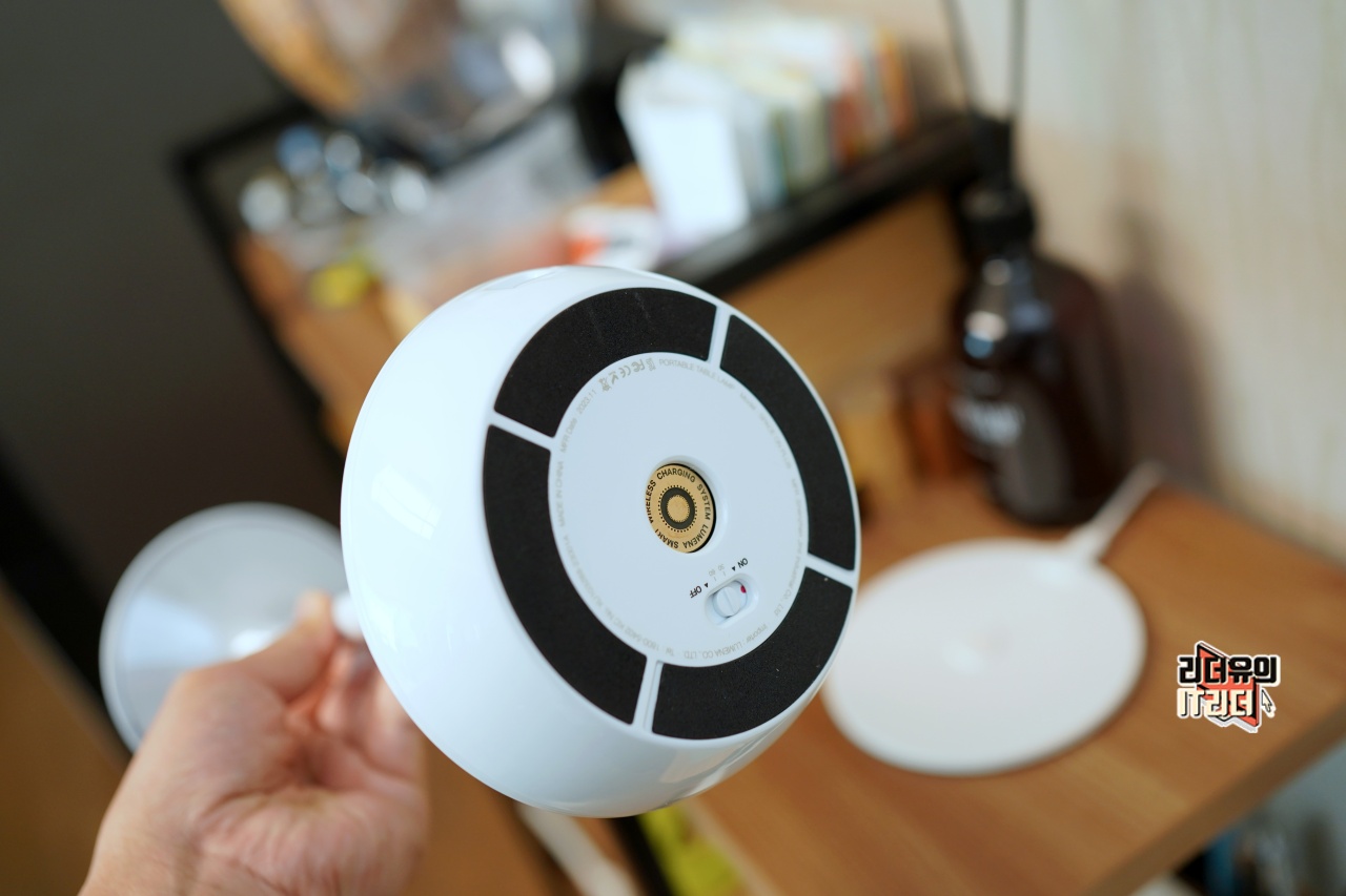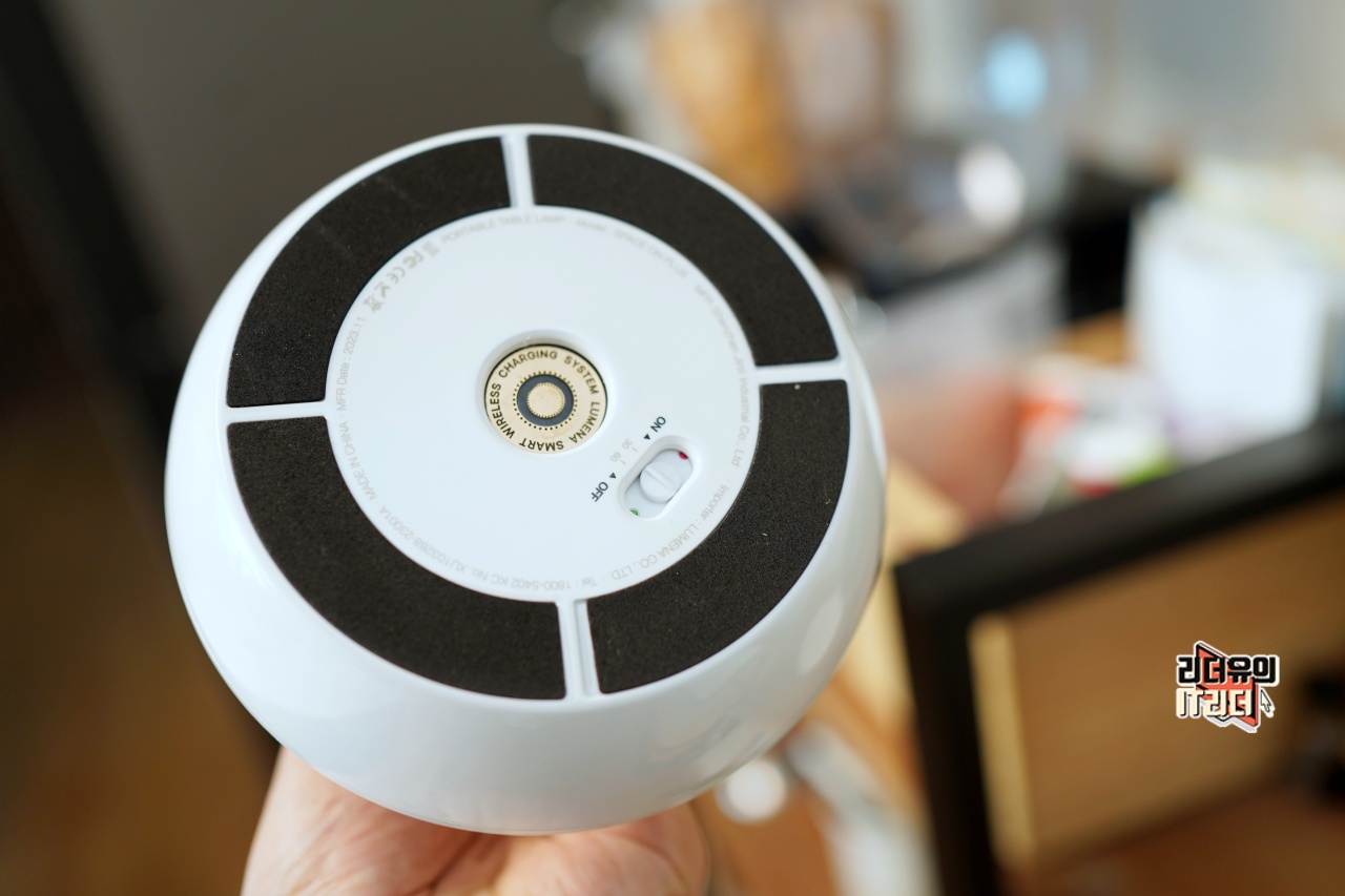 루메나 테이블 조명 SPACE ON PLUS 바닥면을 보면 무선 충전 크래들과 연결되는 단자를 볼 수 있습니다. 방향 상관 없이 충전이 가능하게 되어 있습니다. 그래서 평상시에는 무선 충전 크래들에 올려두고