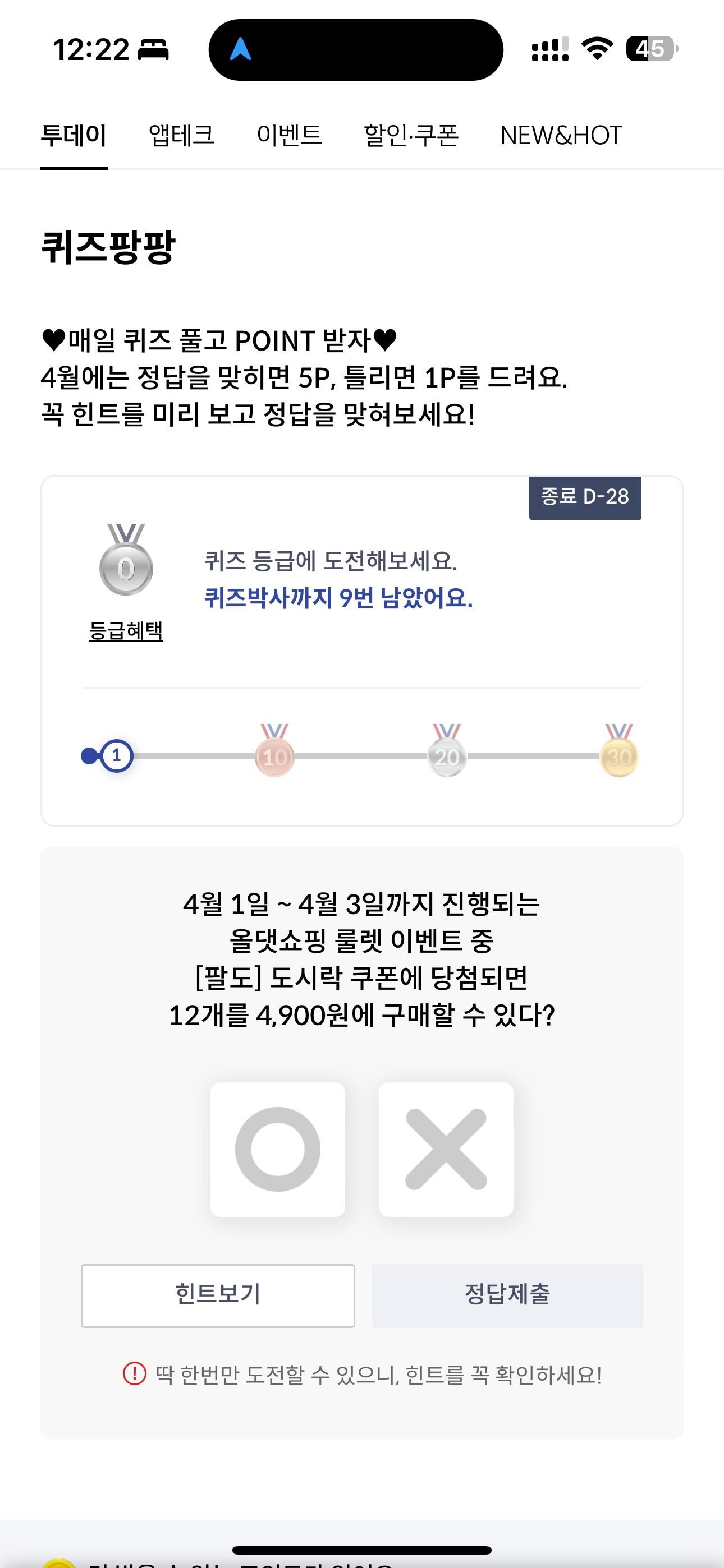 신한카드 퀴즈팡팡 정답은 O 입니다