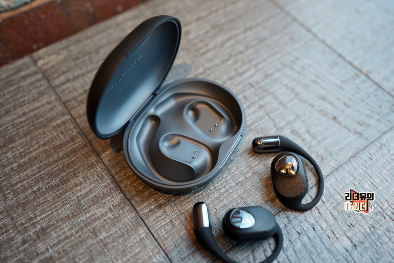 사운드피츠 고프리2 케이스를 오픈한 모습입니다. 오픈 이어 디자인이라 와이드하게 장착되어 있는 유닛을 볼 수 있습니다. 참고로 이렇게 충전 케이스를 포함해 사용할 경우 무려 35시간이나 사용이 가능합니다.