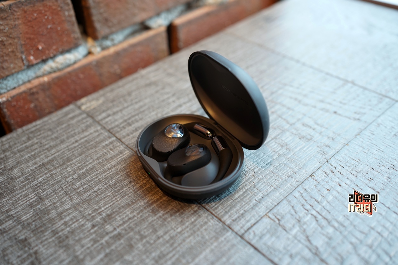 사운드피츠 고프리2 케이스를 오픈한 모습입니다. 오픈 이어 디자인이라 와이드하게 장착되어 있는 유닛을 볼 수 있습니다. 참고로 이렇게 충전 케이스를 포함해 사용할 경우 무려 35시간이나 사용이 가능합니다.