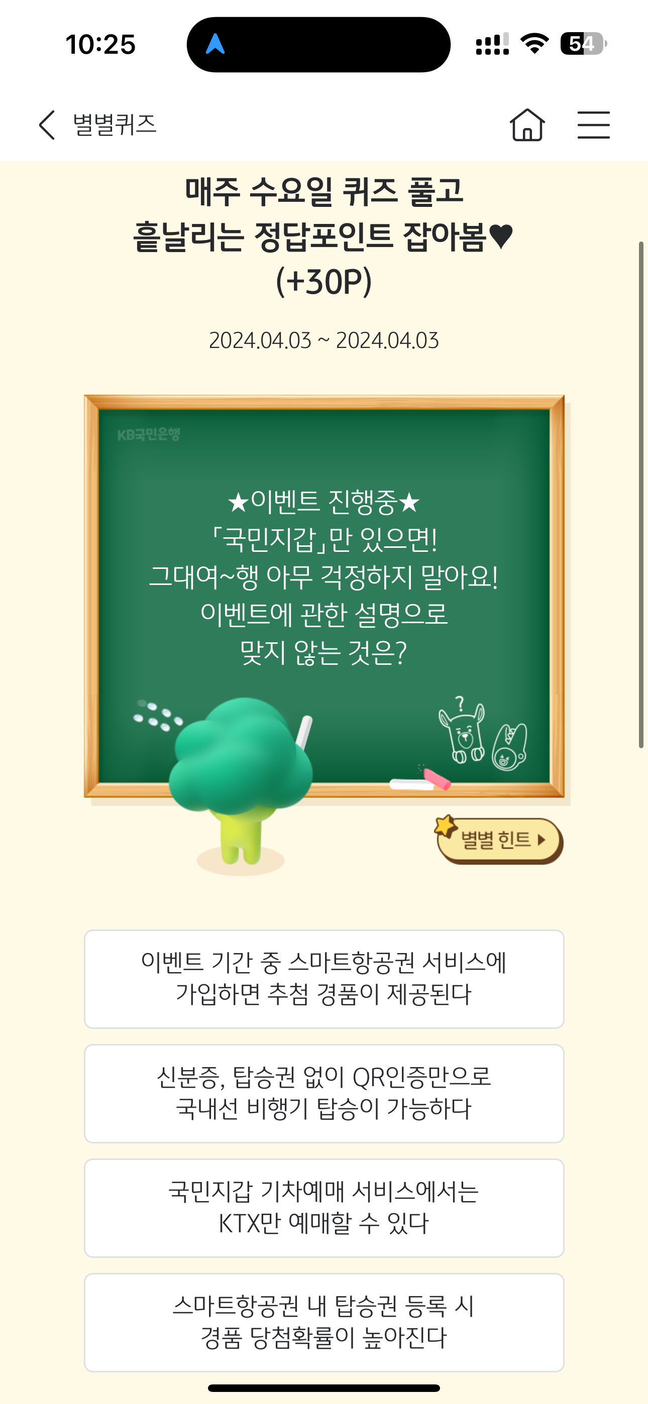 KB스타뱅킹 별별퀴즈 4월 3일 문제입니다