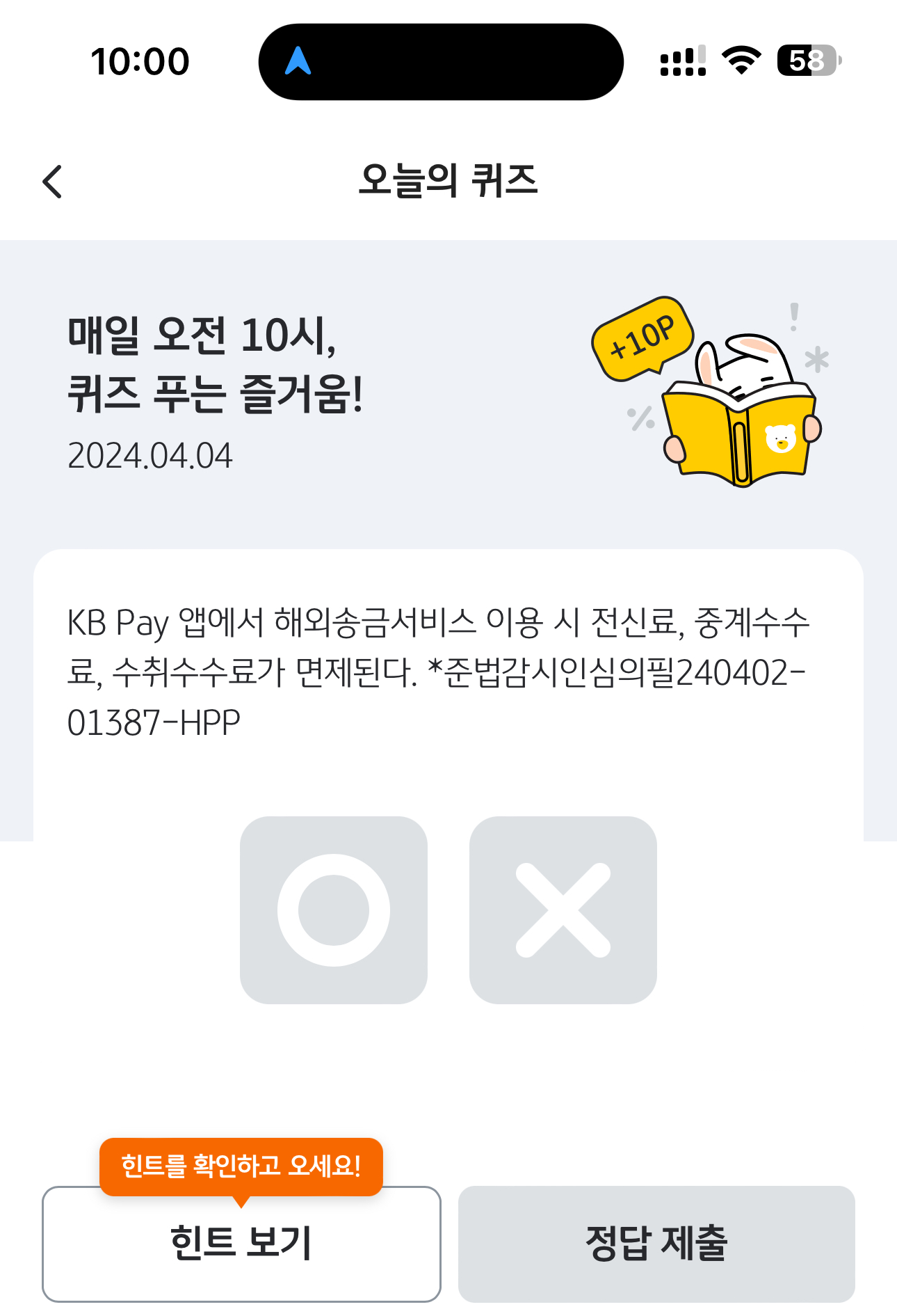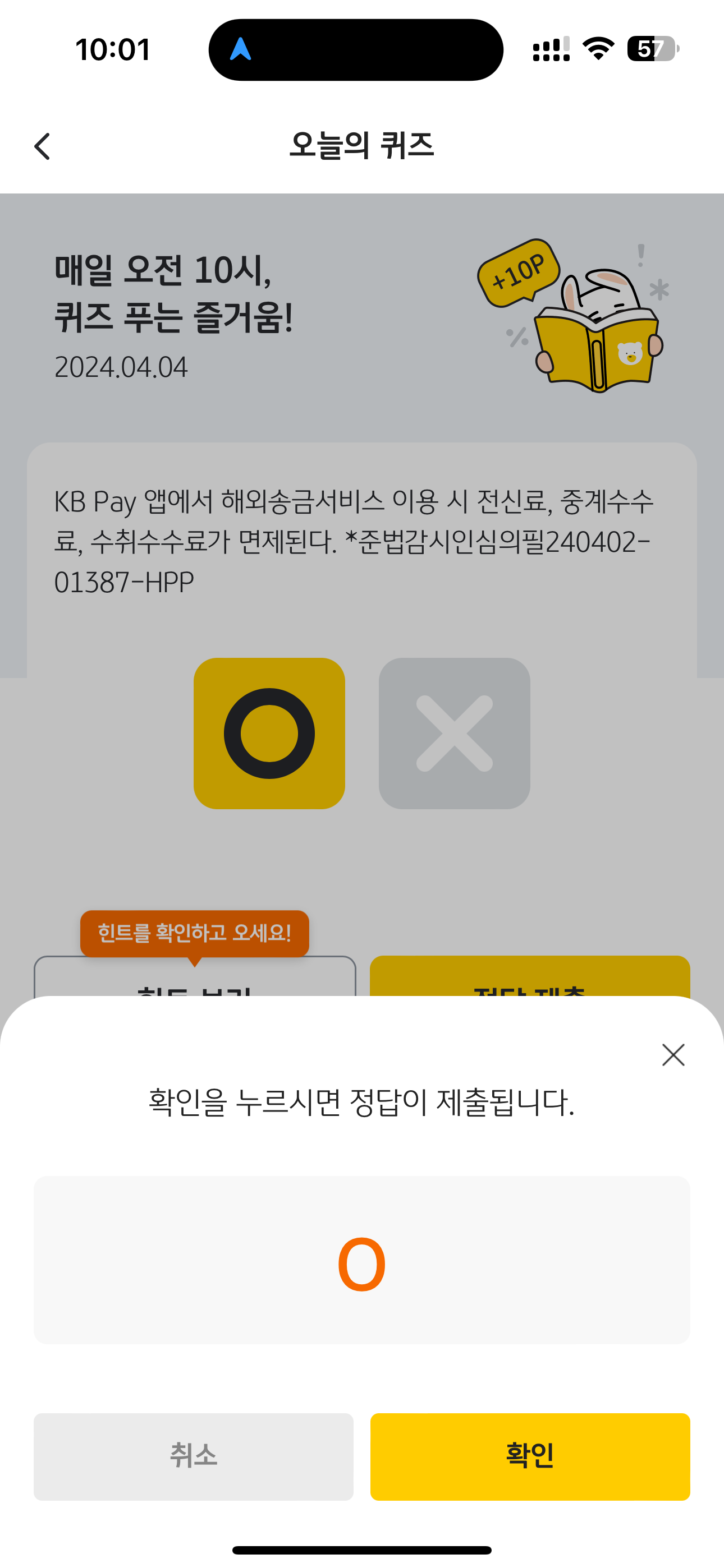 KB Pay 오늘의 퀴즈 정답은 O 입니다