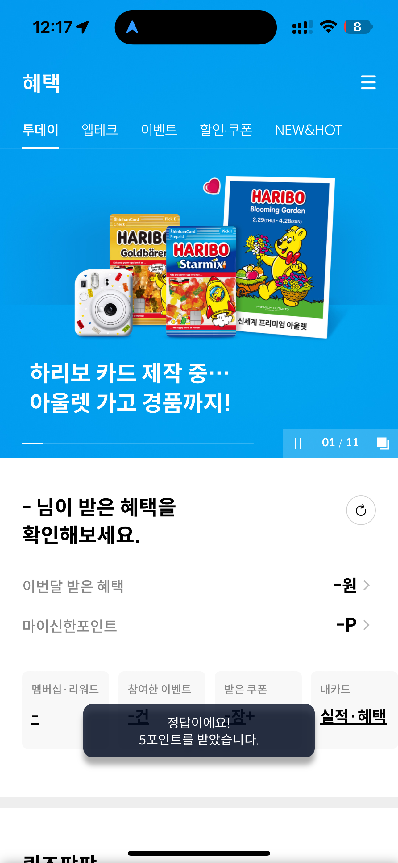 5포인트를 받았습니다. 포인트는 현금 전환 가능하니 꼭 받으시고요. 여러분의 재테크를 응원합니다