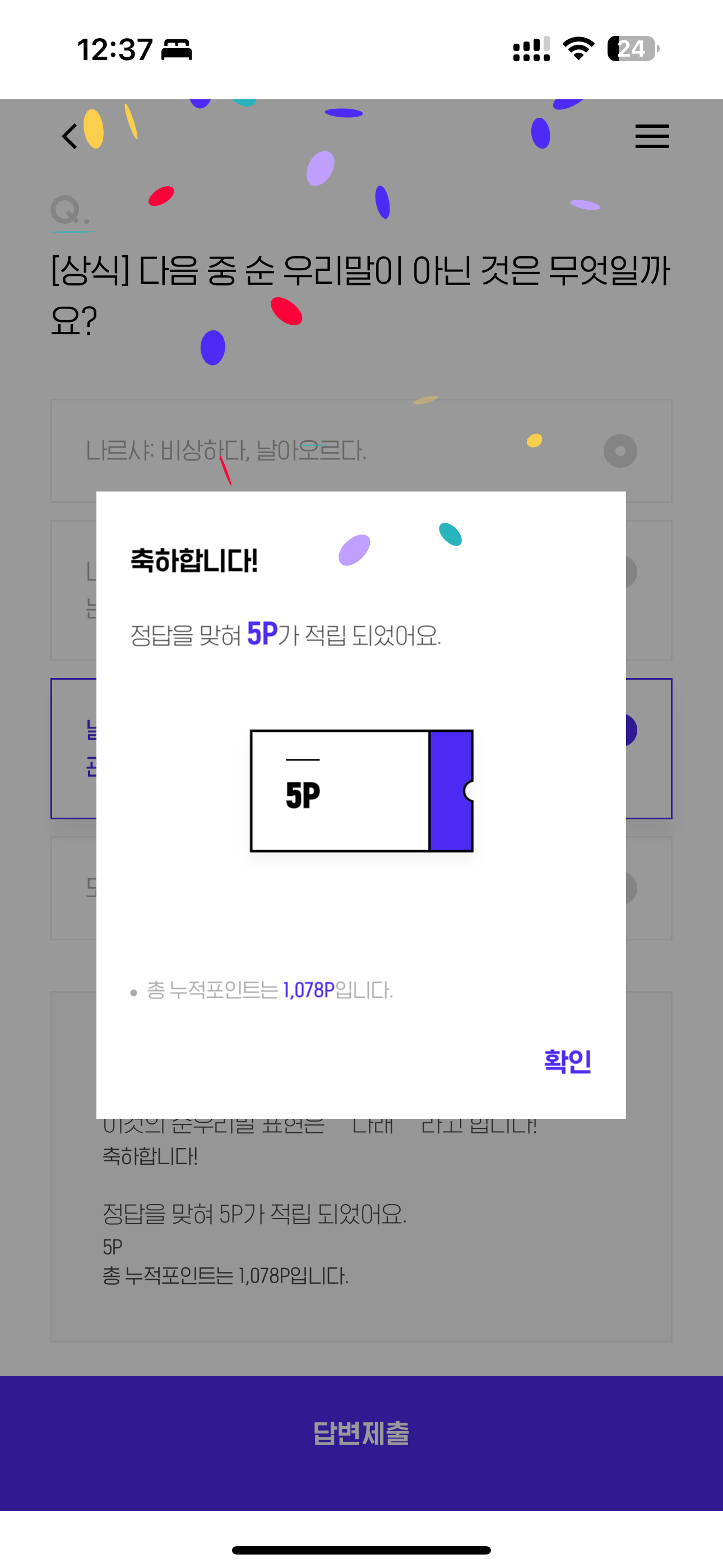5P를 받았습니다. 포인트는 쇼핑몰에서 현금처럼 사용 가능하니 꼭 받으세요