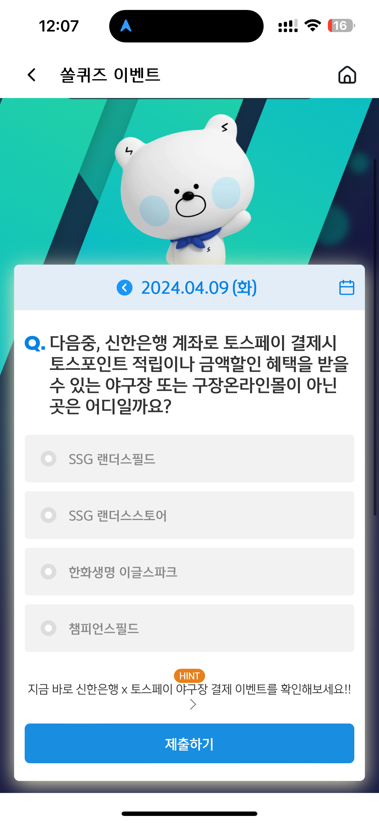 신한 슈퍼SOL 야구/상식 쏠퀴즈 4월 9일 문제입니다