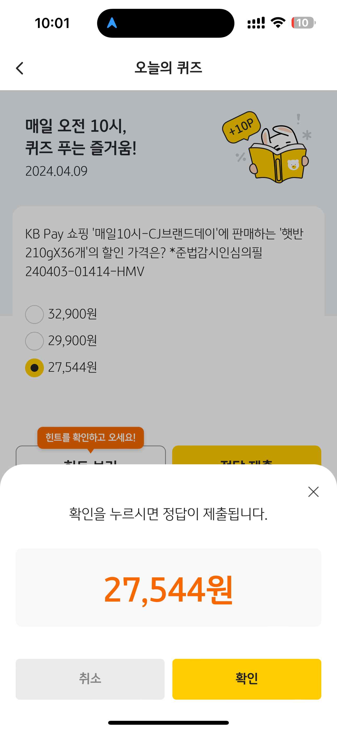 KB Pay 오늘의 퀴즈 정답은 27,544원 입니다