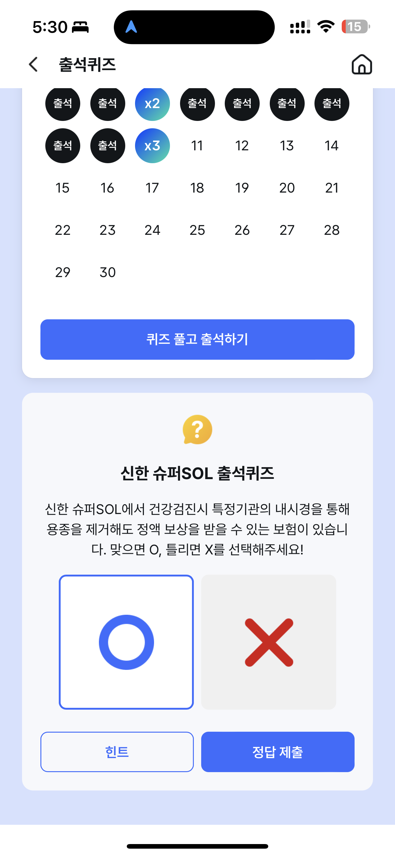 신한 슈퍼SOL 출석퀴즈 정답은 O 입니다