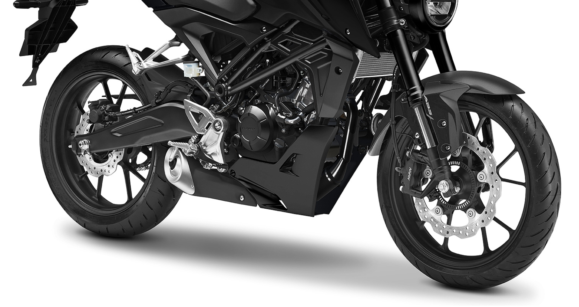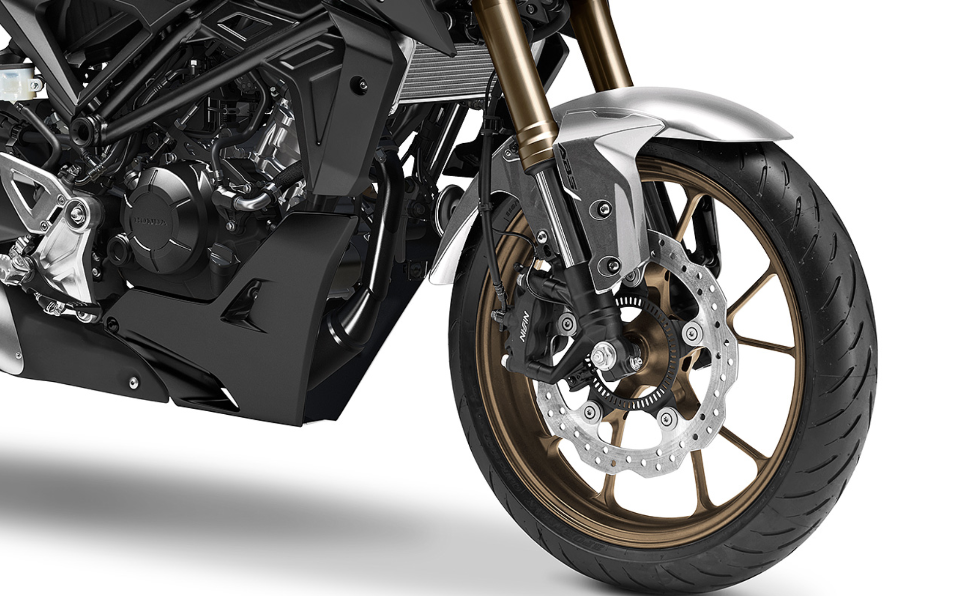 2024년 혼다 125cc 오토바이 CB125R은 고성능 전후 서스펜션을 통해 부드러운 승차감을 느낄 수 있습니다. 프런트에는 도립식 쇼와 SFF-BP USP 서스펜션을 채용했고 리어는 싱글 리어 쇼크로 5단계 프리로드 조정이 가능합니다.