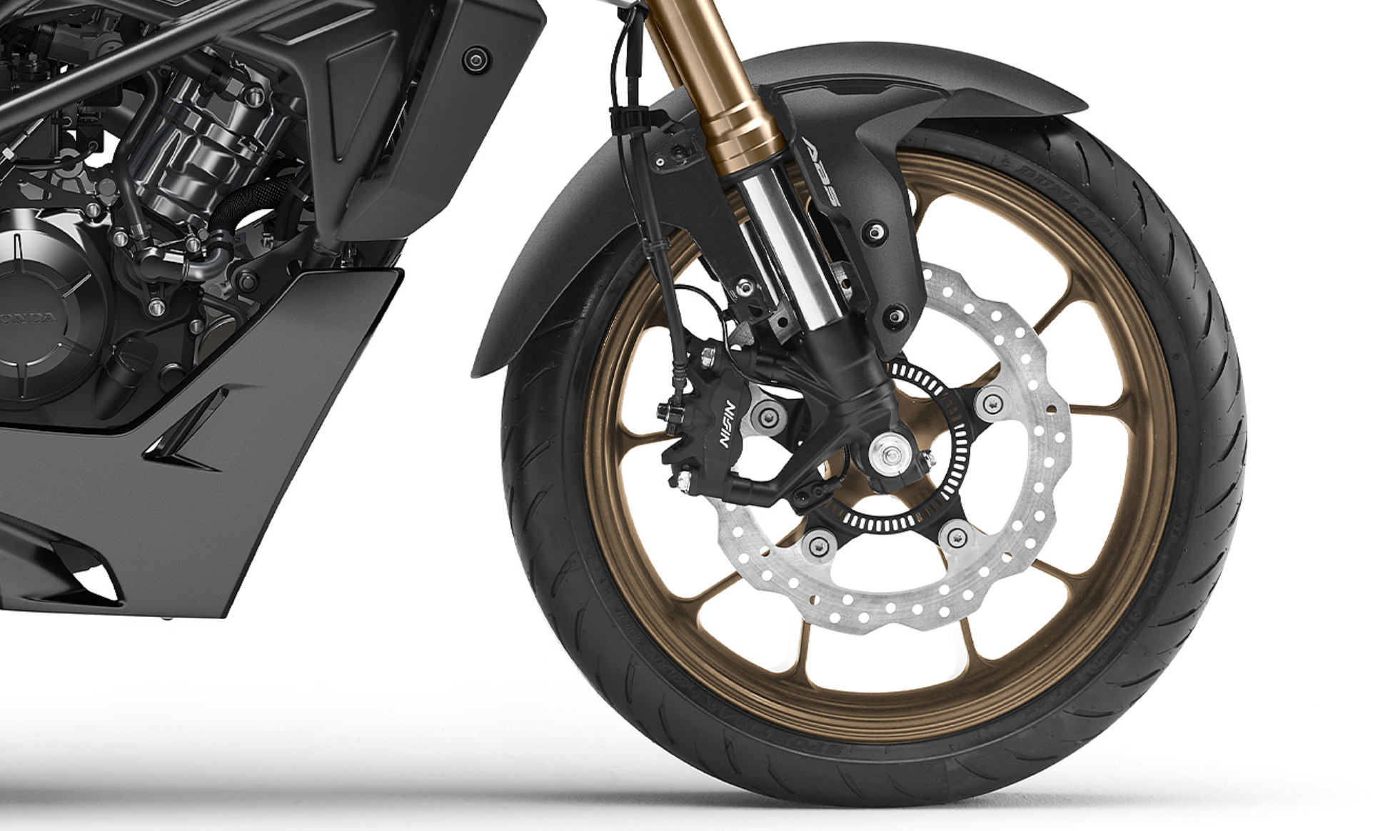 2024년 혼다 125cc 오토바이 CB125R은 고성능 전후 서스펜션을 통해 부드러운 승차감을 느낄 수 있습니다. 프런트에는 도립식 쇼와 SFF-BP USP 서스펜션을 채용했고 리어는 싱글 리어 쇼크로 5단계 프리로드 조정이 가능합니다.