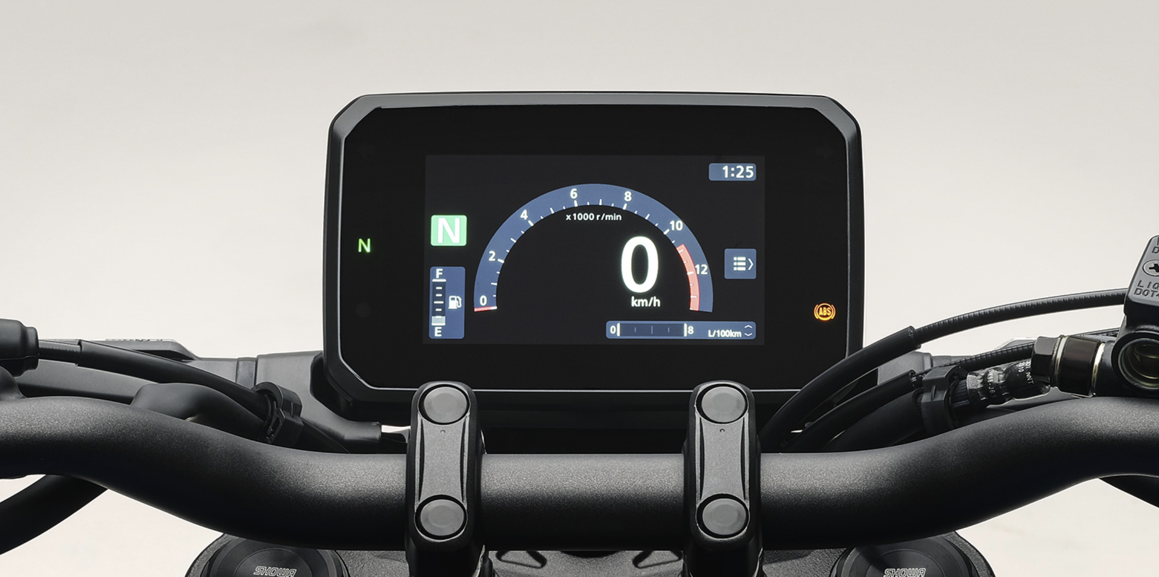 2024년 혼다 125cc 오토바이 CB125R은 저렴한 가격이지만 5인치 풀 컬러 TFT 디스플레이를 탑재했습니다. 속도, RPM, 연료게이지, 소비량, 라이딩 모드, 시프트 업 인디케이터 등 다양한 주행 정보를 보기 좋게 이용할 수 있습니다.
