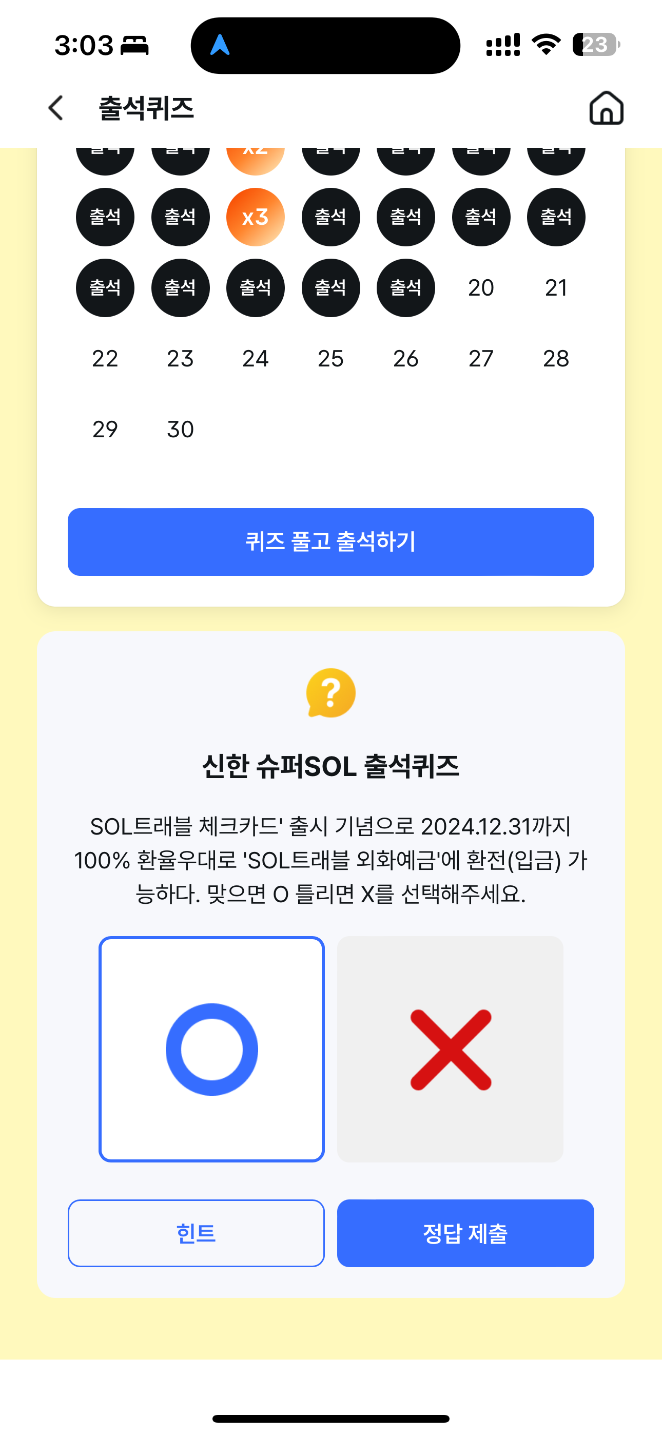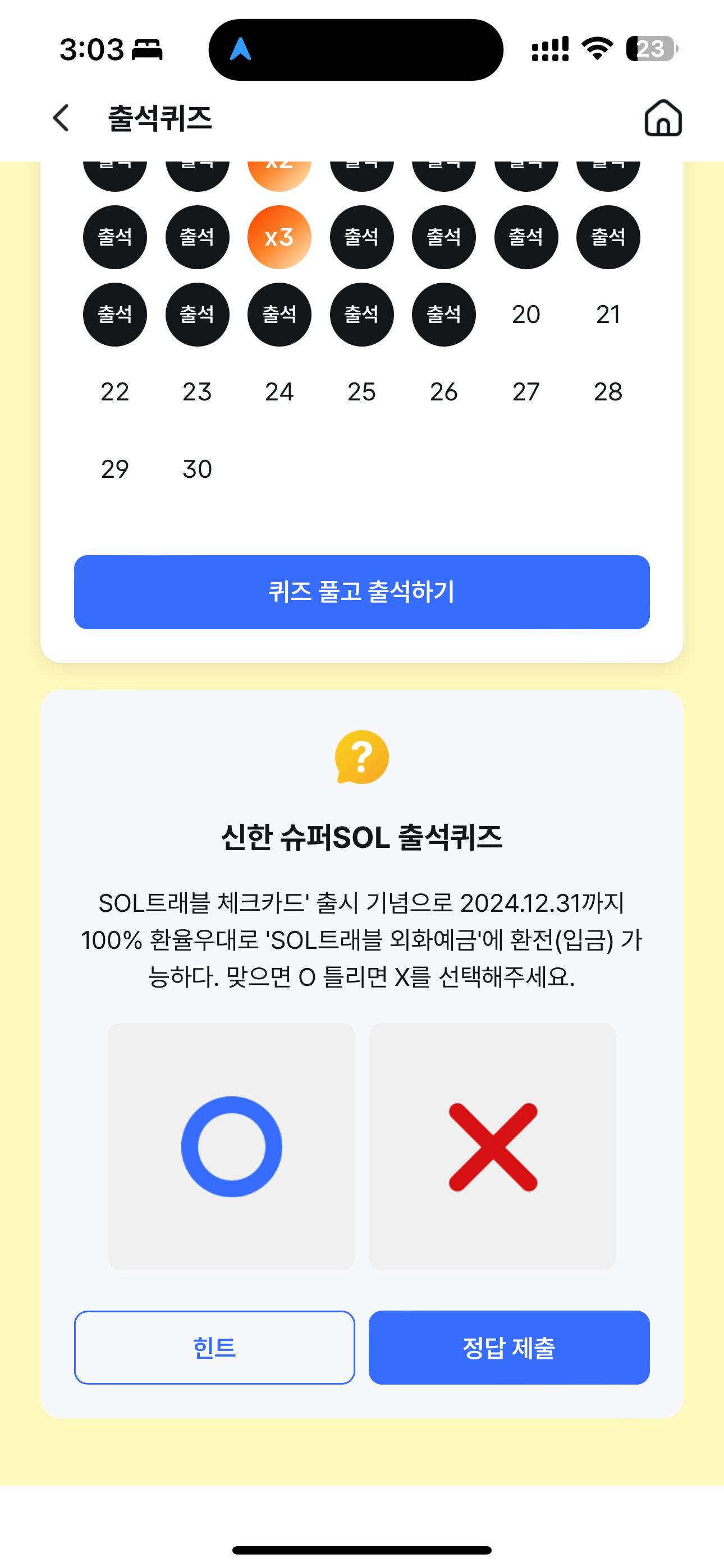 신한 슈퍼SOL 출석퀴즈 정답은 O 입니다