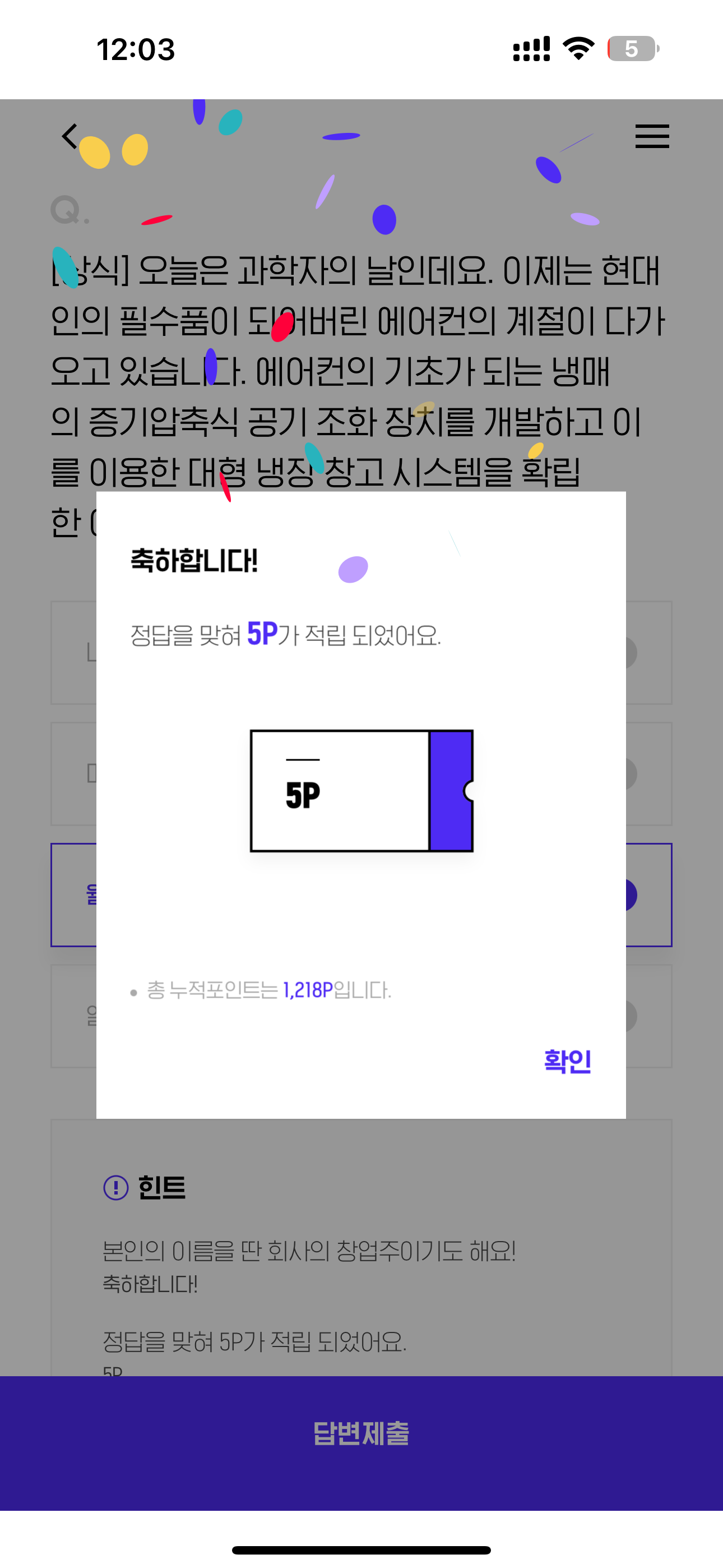 5P를 받았습니다. 포인트는 쇼핑몰에서 현금처럼 사용 가능하니 꼭 받으시고요. 여러분의 재테크를 응원합니다