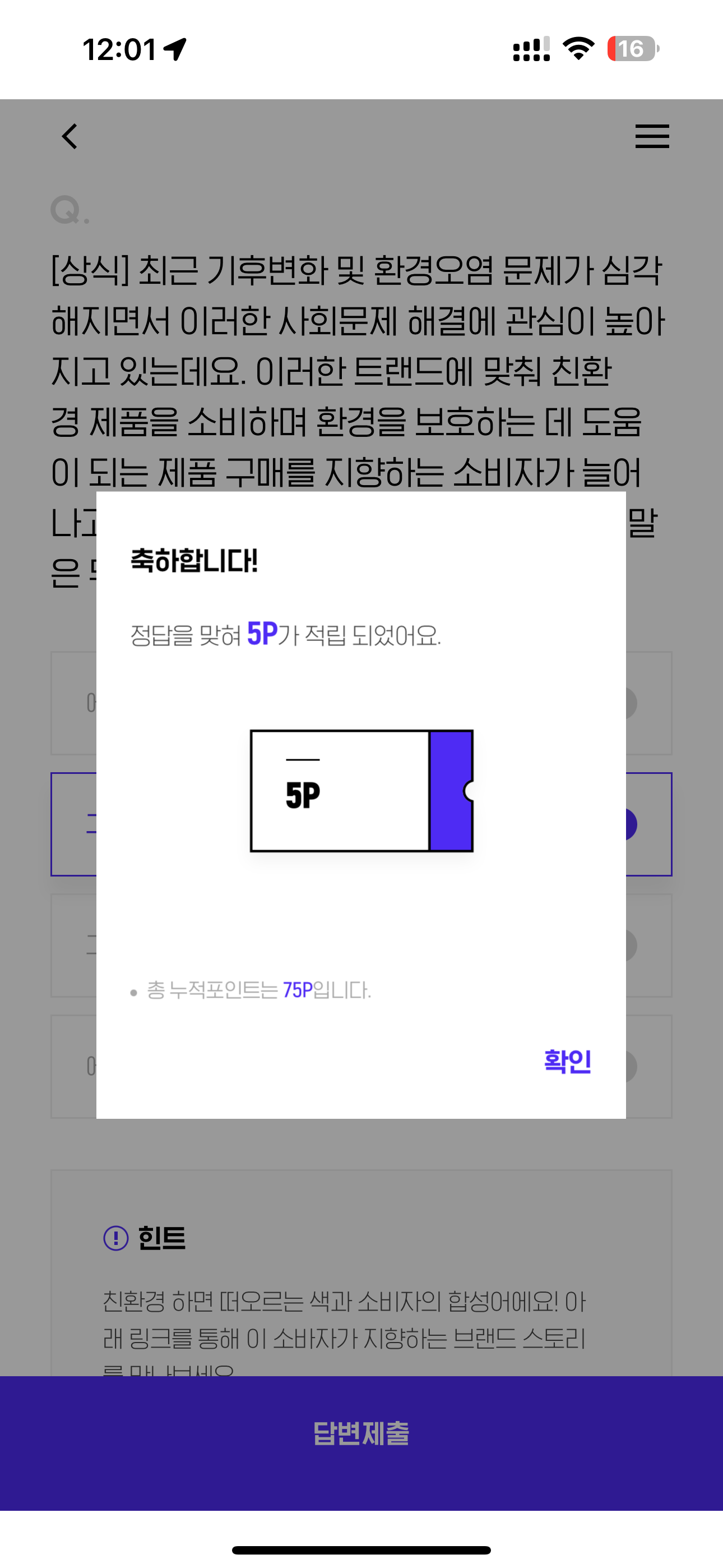 H포인트 퀴즈 4월 30일 정답(최근 기후변화 및 환경오염 문제가 심각해지면서 이러한 사회문제 해결에 관심이 높아지고 있는데요)