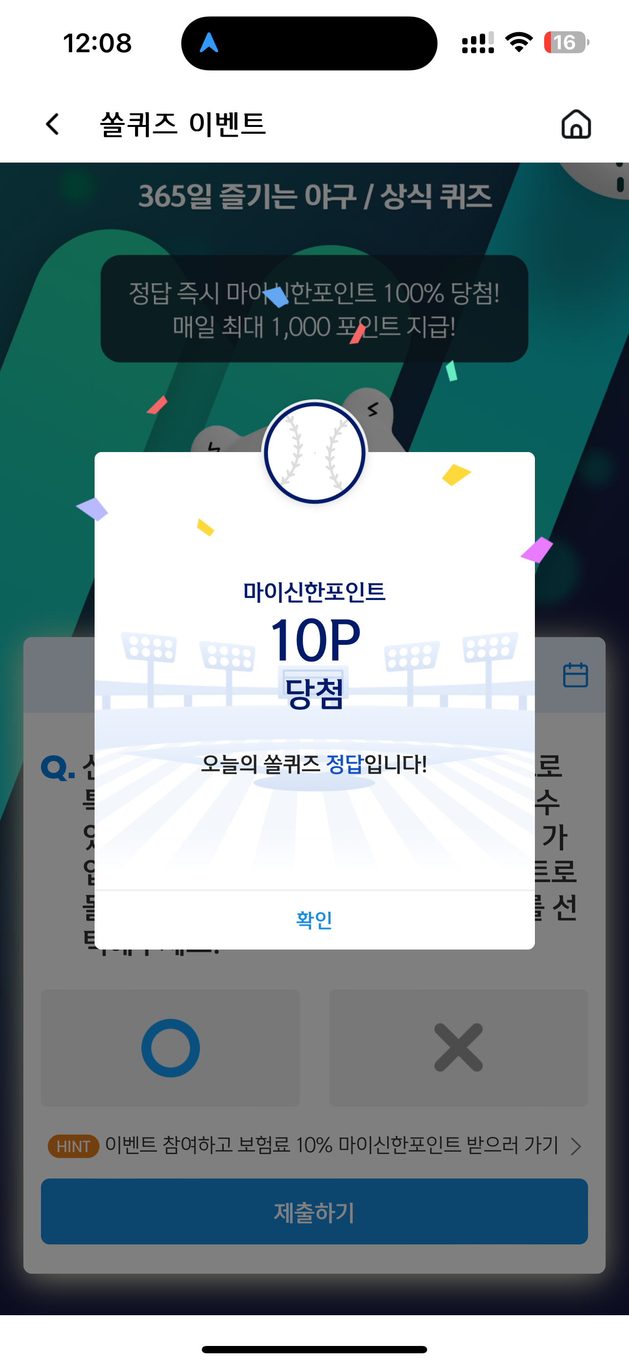신한 슈퍼SOL 야구/상식 쏠퀴즈 정답은 O 입니다