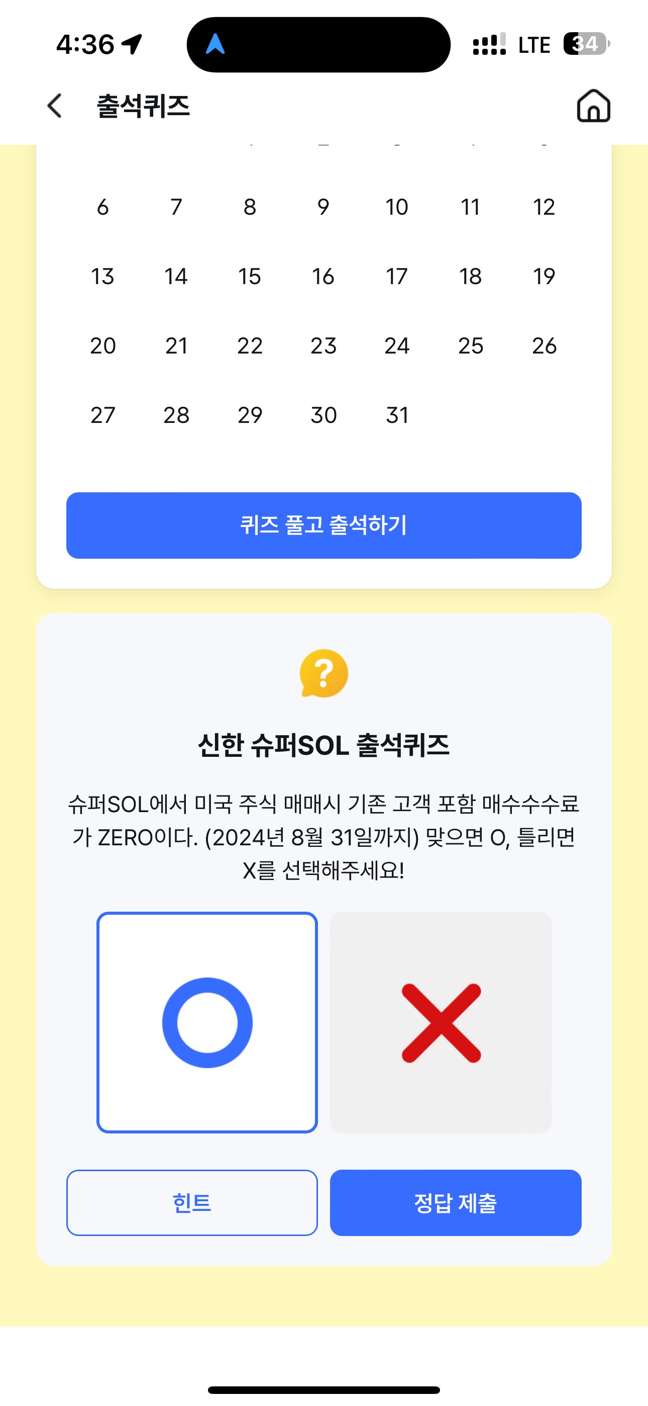 신한 슈퍼SOL 출석퀴즈 정답은 O 입니다