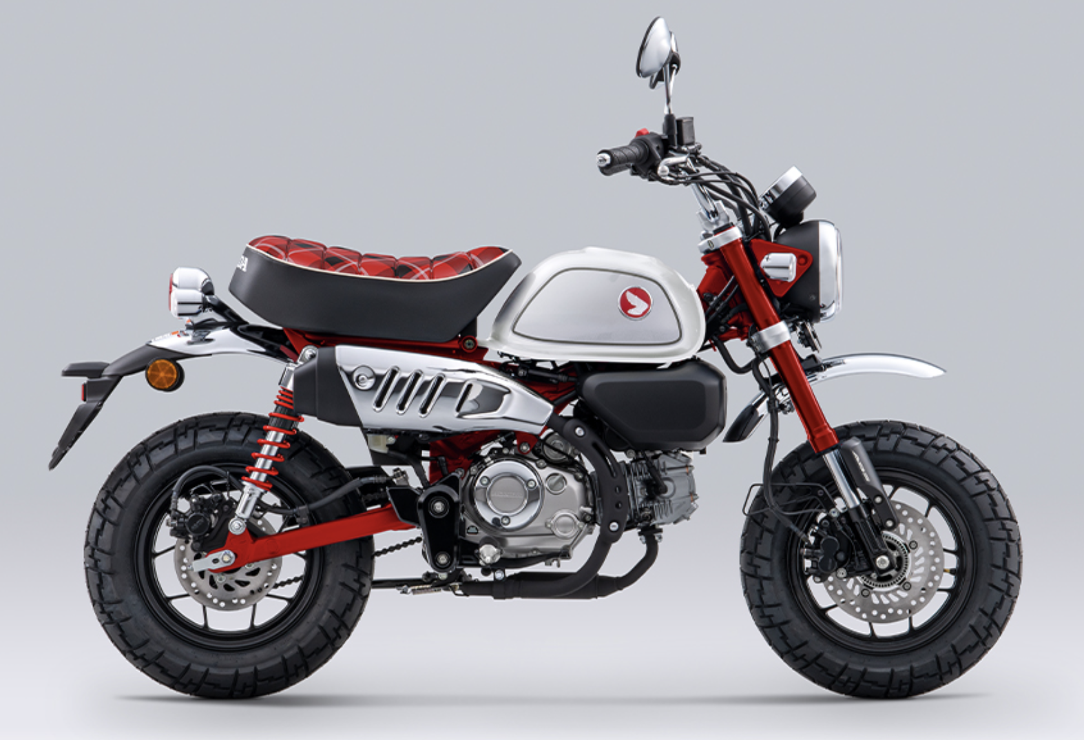 2024년 혼다 몽키125는 색상의 변화를 확인해 볼 수 있습니다. 펄 샤이닝 블랙 색상과 펄 누블라 레드 색상이 있습니다. 크롬 메탈 포인트와 감각적인 조합을 보여주는 컬러 매칭을 볼 수 있습니다. 나머지 디자인 차이는 없고 성능적인 변화도 없습니다.