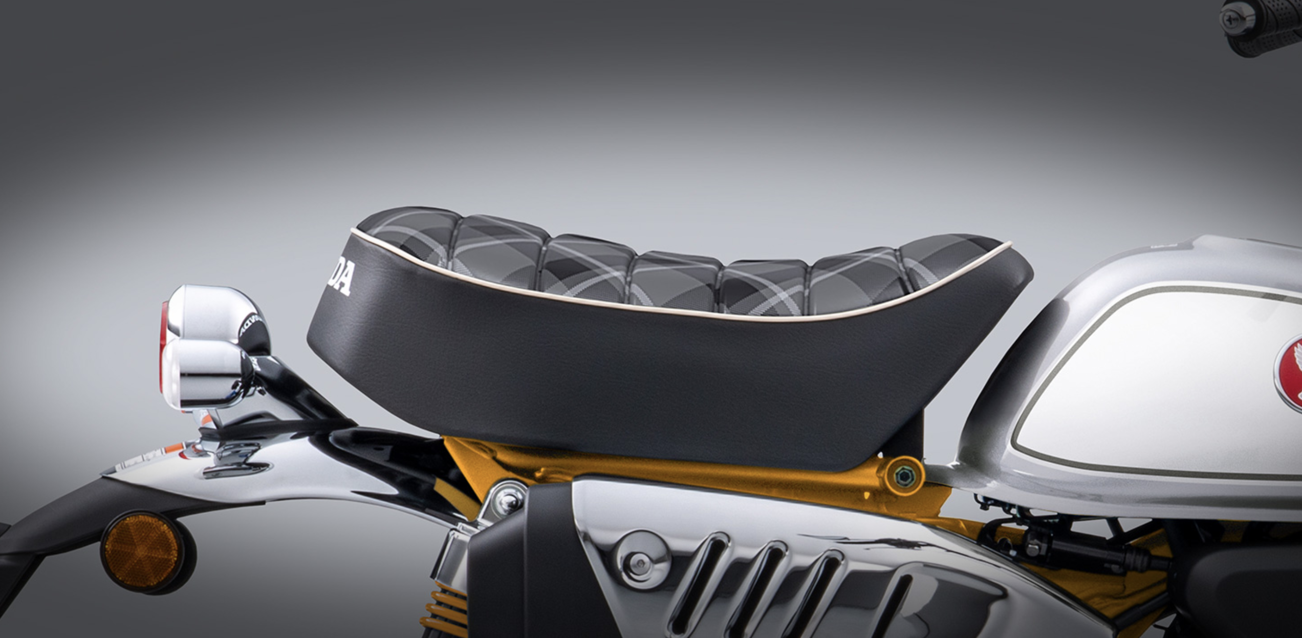 2024년 혼다 몽키125는 캐쥬얼한 바이크 답게 편안한 시트를 장착했습니다. 넓은 면적의 쿠션과 패셔너블한 감성의 체크 무늬로 감각적인 사용을 할 수 있습니다.