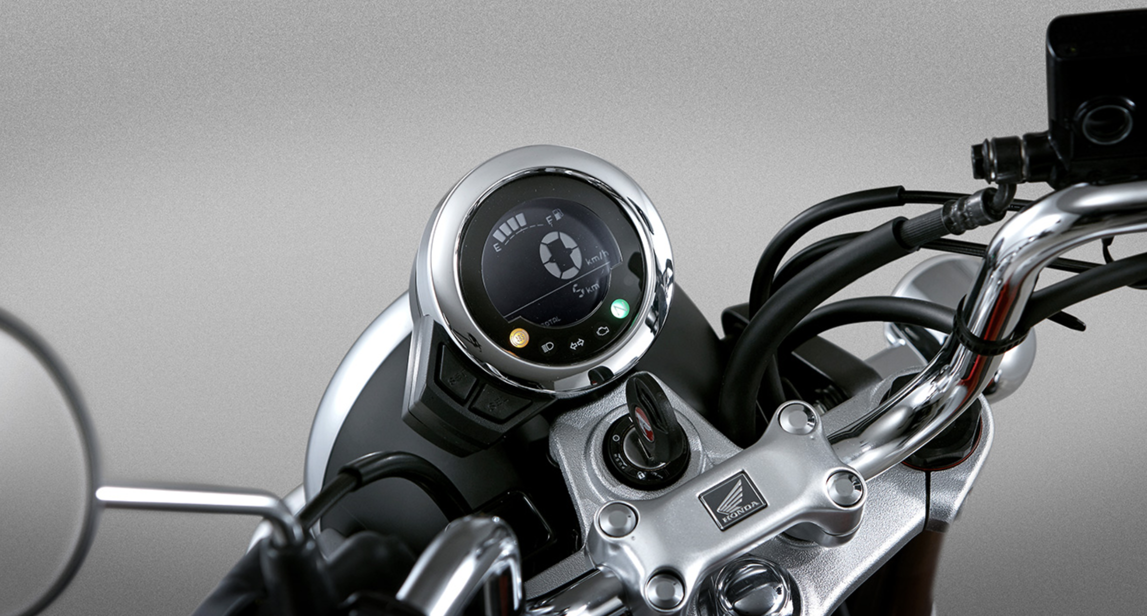 혼다 몽키125는 원형의 귀여운 LCD 계기판이 적용되어 있습니다. 속도, 주행 기록, 연료 게이지 등을 직관적으로 확인할 수 있습니다.