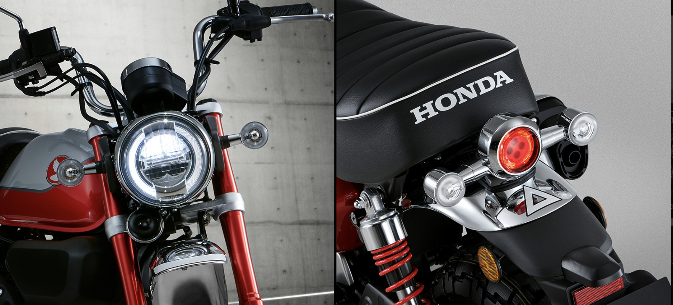 혼다 몽키125는 헤드라이트, 테일램프, 방향 지시등 다 LED로 적용되어 있어 화려하면서도 세련된 디자인을 느낄 수 있습니다.
