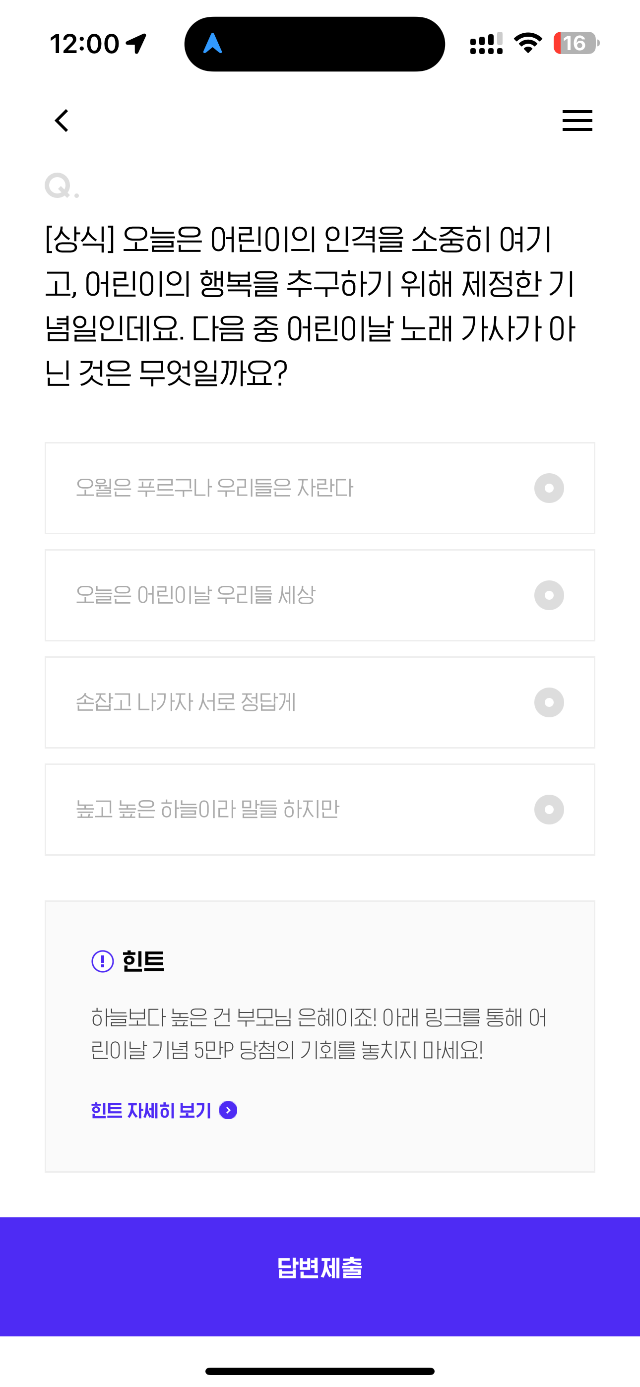 H포인트 퀴즈 5월 5일 문제입니다