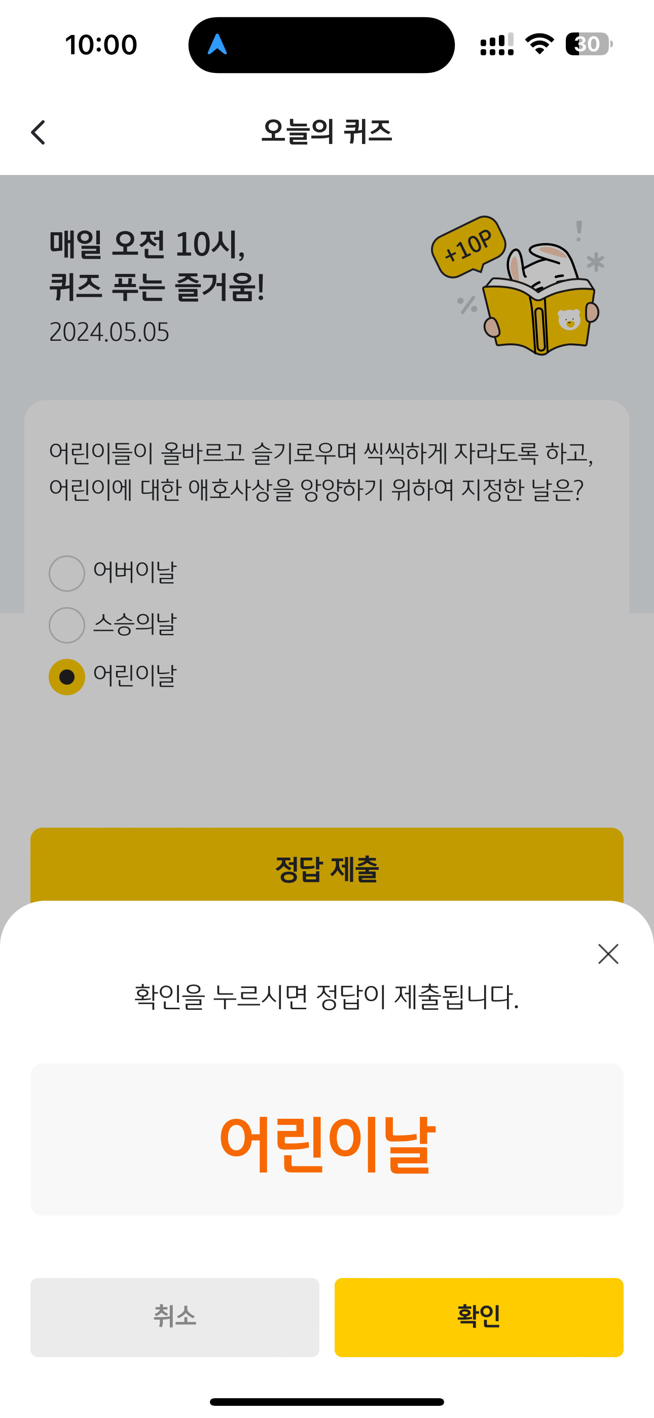 KB Pay 오늘의 퀴즈 정답은 어린이날 입니다