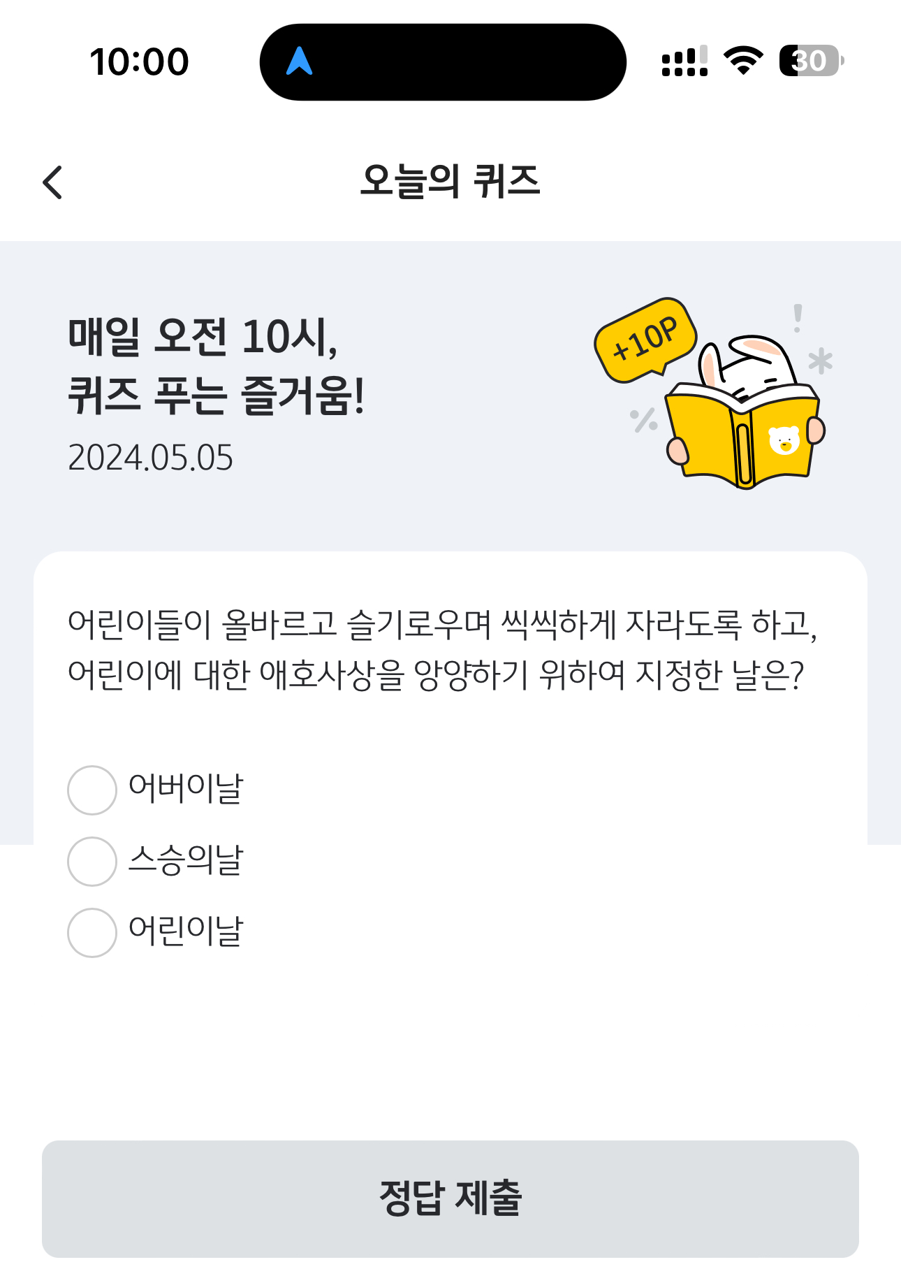 KB Pay 오늘의 퀴즈 정답은 어린이날 입니다
