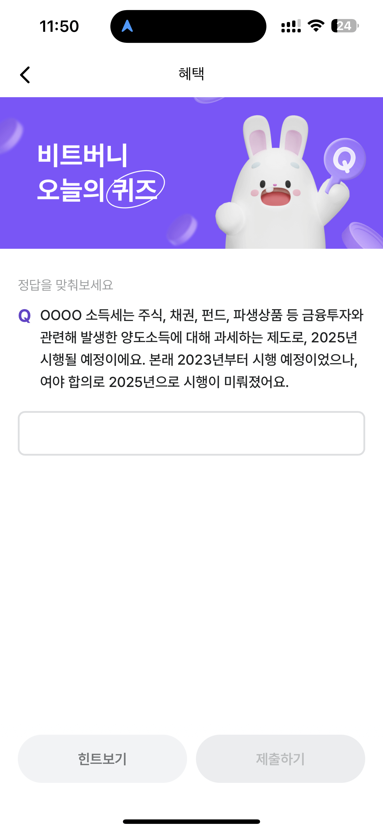 비트버니 오늘의 퀴즈 힌트는 ㄱㅇㅌㅈ 입니다