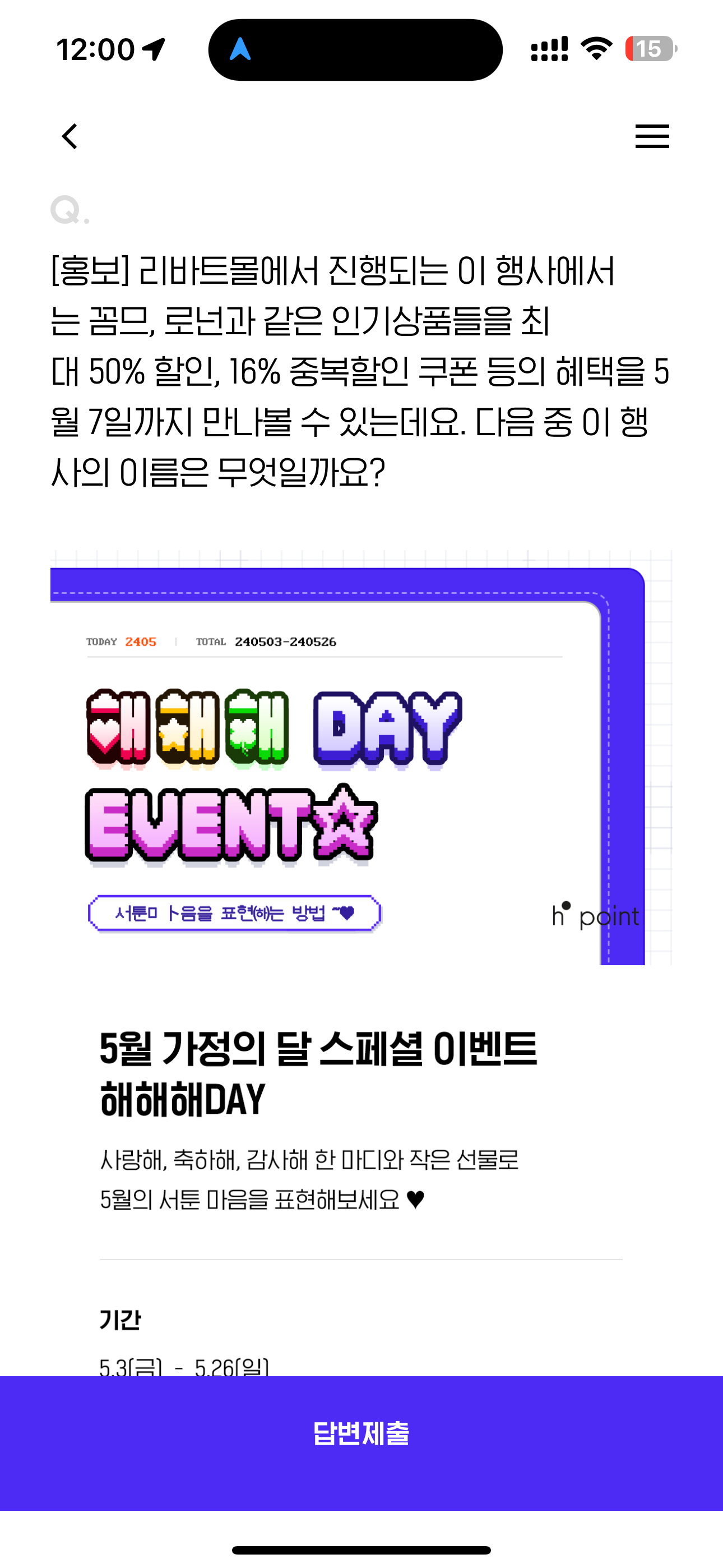 H포인트 퀴즈 5월 6일 문제입니다