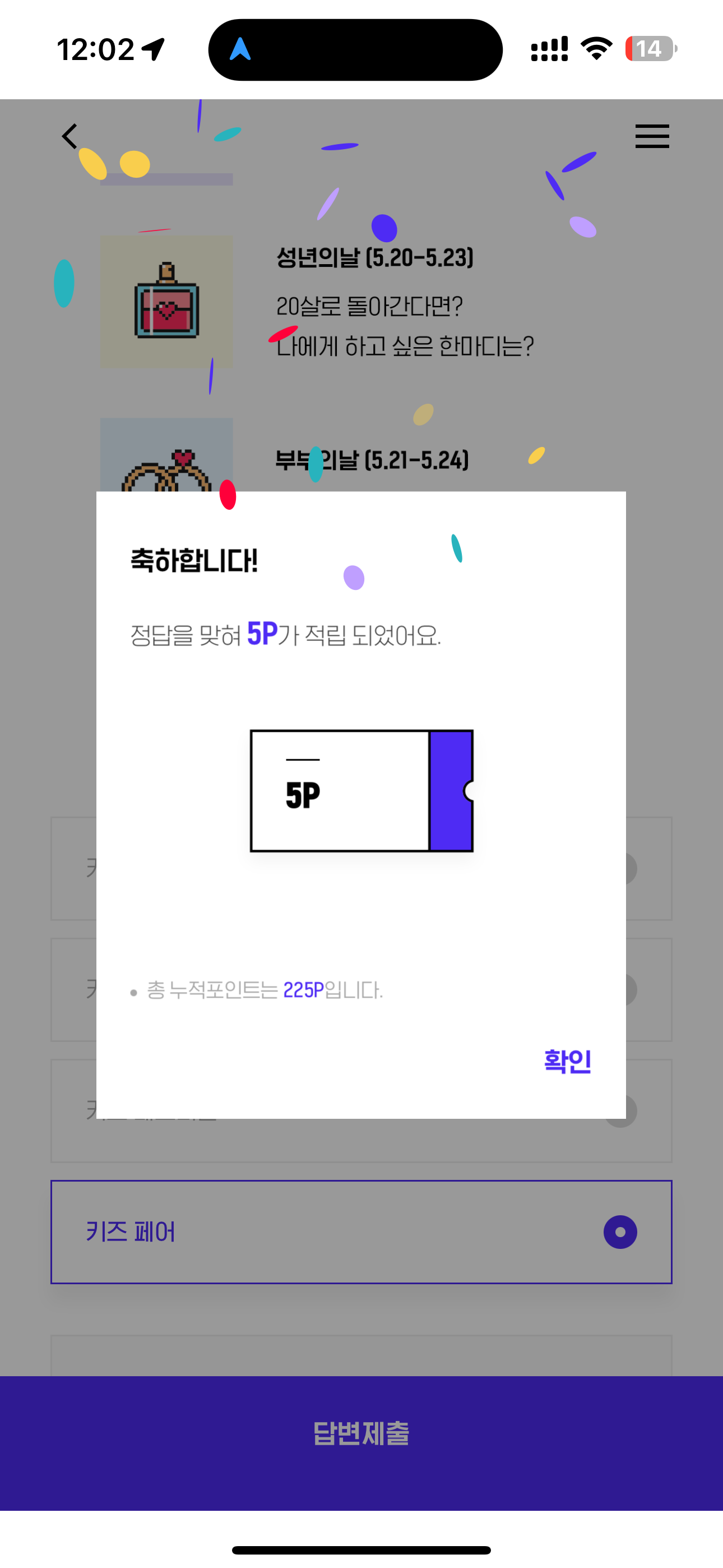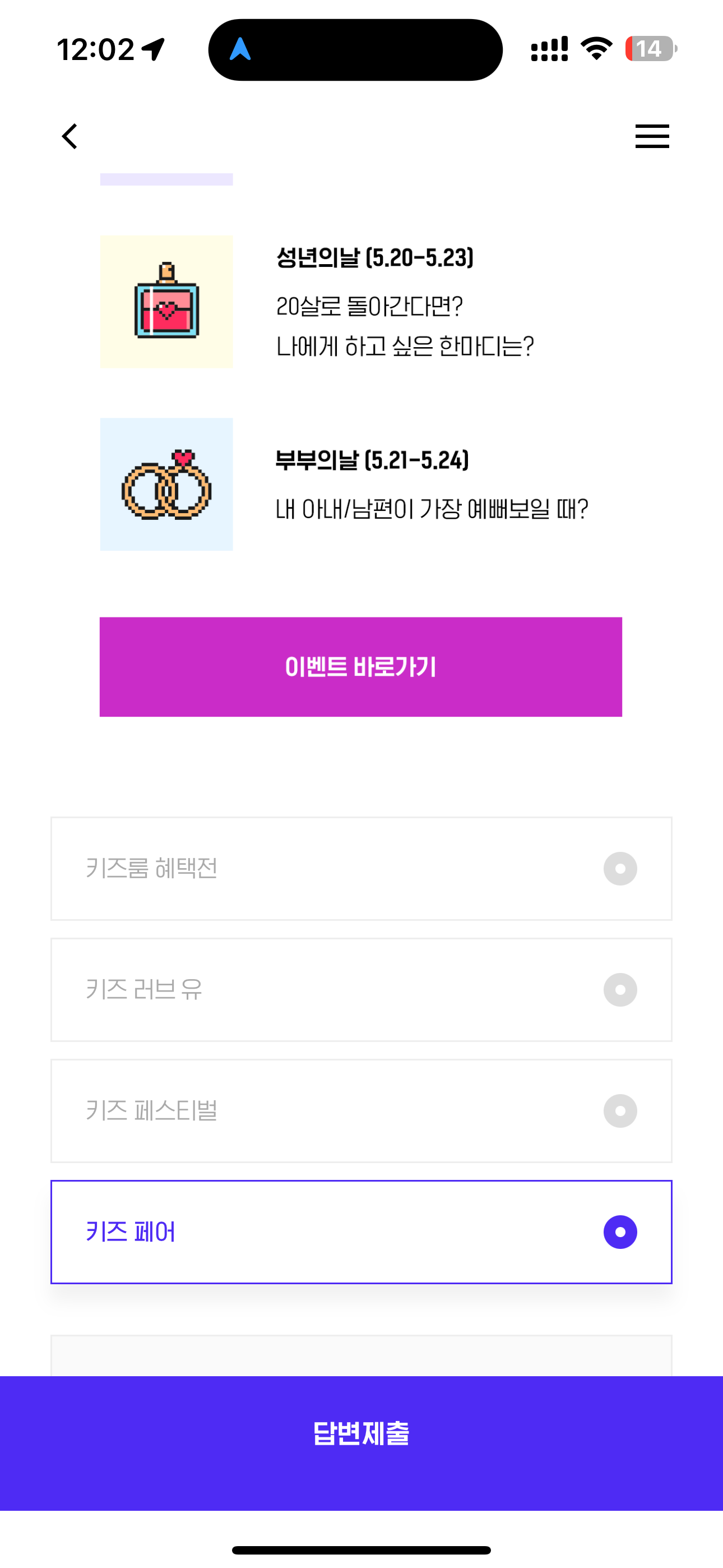 H포인트 퀴즈 정답은 키즈 페어 입니다