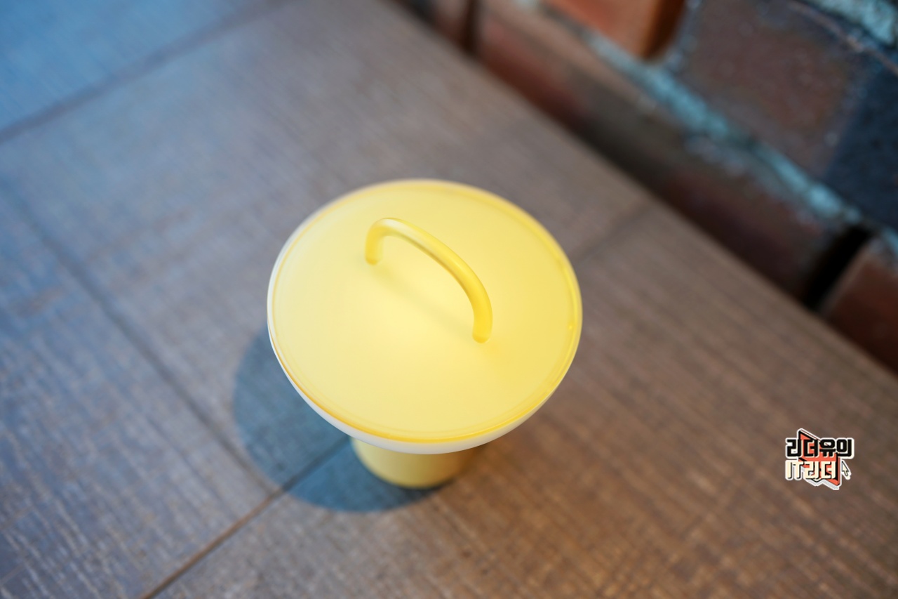 카나리 옐로우 색상의 POT 입니다. 위에는 손잡이가 있어서 가볍게 들어서 옮길 수 있습니다.