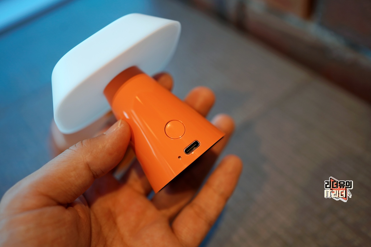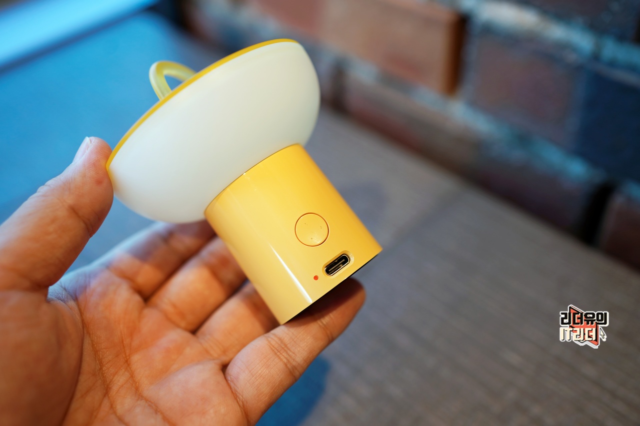 조명 밝기는 3단계로 조절할 수 있습니다. 다른 조명과 다르게 전원 버튼이 전면에 있습니다. 이 부분도 색상을 달리해 디자인적인 포인트를 주고 있습니다.