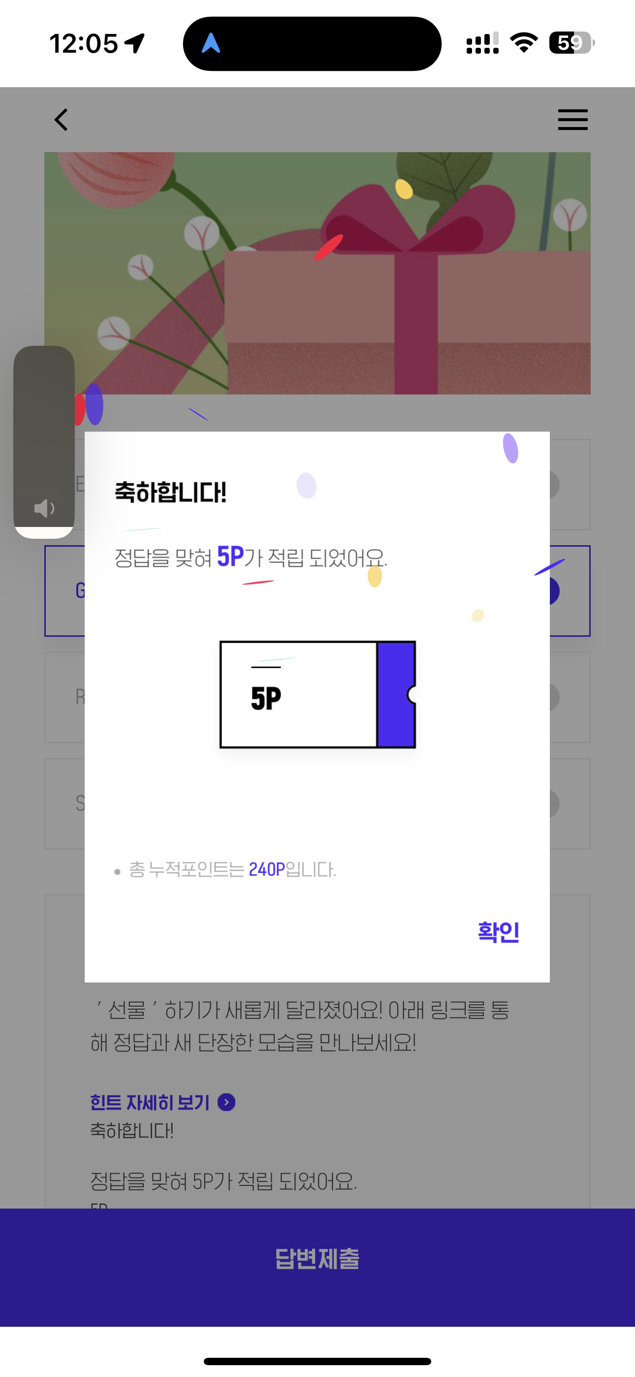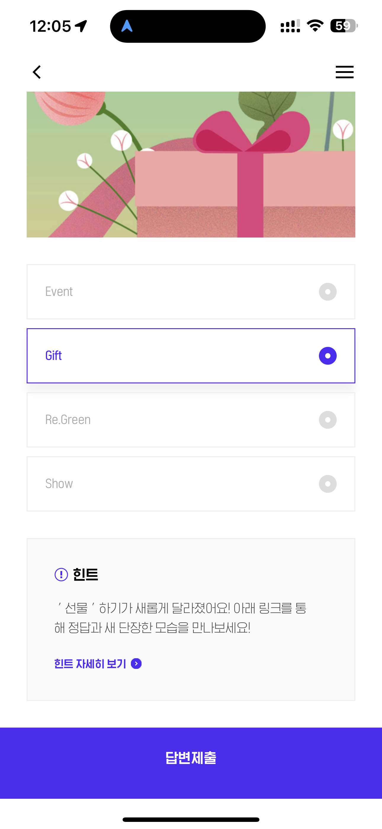 H포인트 퀴즈 정답은 Gift 입니다